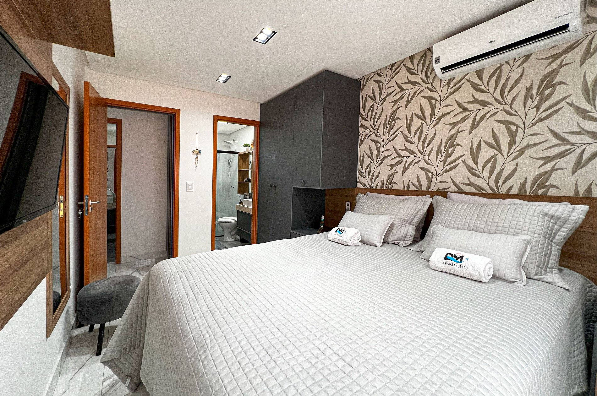 - 1 Suíte Master Cama Queen c/ Ar Condicionado e TV