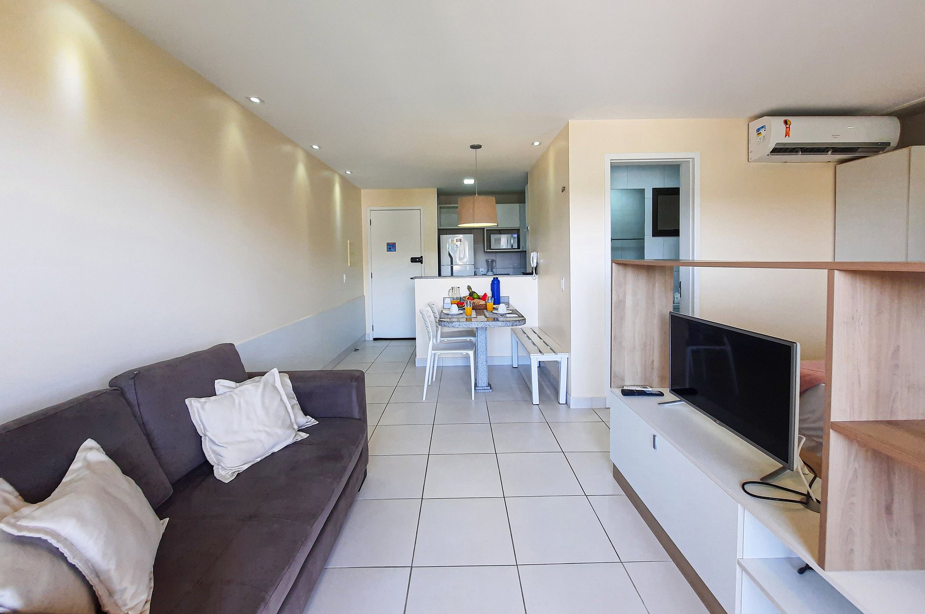 - Sala com sofá cama e TV