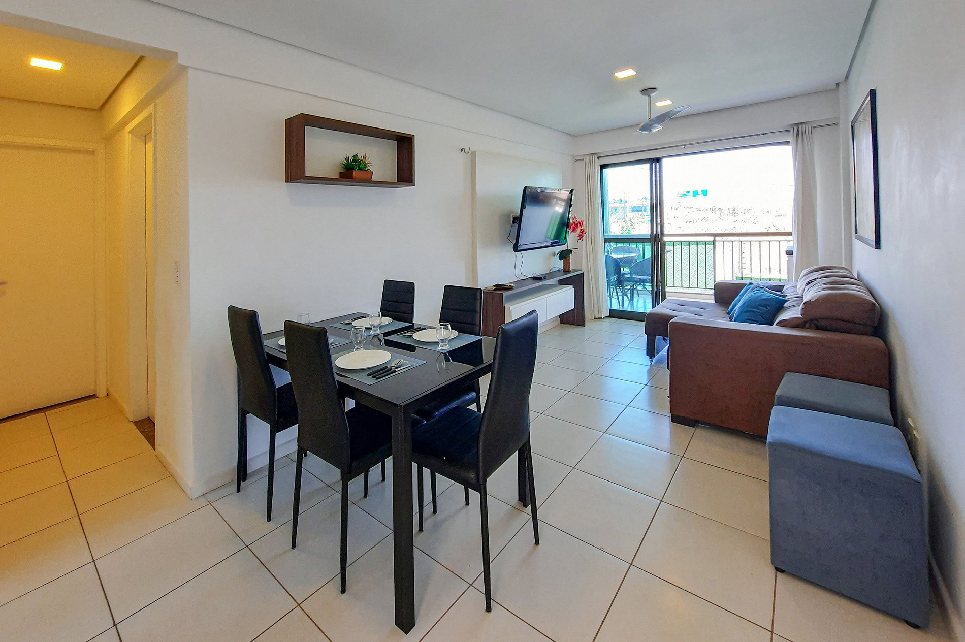 Apartamento no Beverly Hills, próximo ao Beach Park (1km), localizado no 2º andar, poente. Conta com uma varanda com mobília, para que você possa aproveitar o belíssimo Pôr do Sol, excelente para os seus dias de descanso. Acesso via fechadura eletrônica para sua comodidade. A senha é enviada próximo ao horário do check-in (15h). São 2 suítes com ar-condicionado, banheiros completos (com ducha quente). Na sala de estar/jantar tem sofá, TV e mesa para refeições. Cozinha completa com: geladeira, fogão, sanduicheira, cafeteira, micro-ondas, liquidificador, máquina de lavar roupas e demais utensílios de cozinha, WiFi, 1 vaga na garagem e enxoval completo (cama, mesa e banho) e acomoda perfeitamente até 04 pessoas.