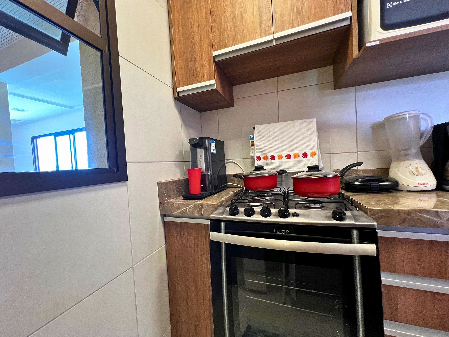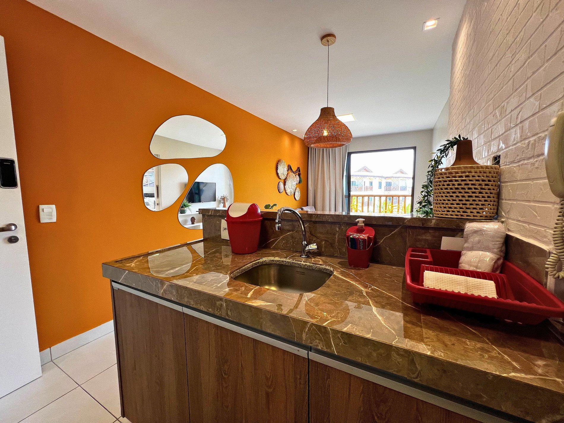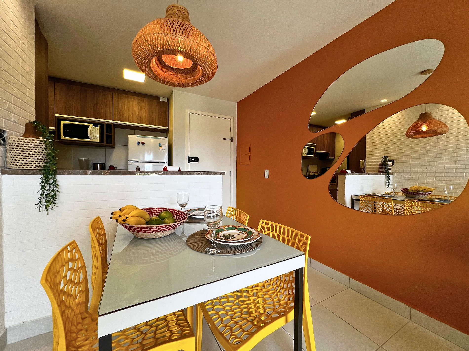 Apartamento super moderno no VG Sun Cumbuco, bem decorado, localizado no 4º andar, com 1 suíte com ar condicionado, e sala com sofá cama, acomoda até 4 pessoas. Oferecemos enxoval de cama e banho completo, WiFi, 1 vaga para veículo disponível. O acesso ao apartamento é por fechadura eletrônica, para maior comodidade e segurança do hóspede. O condomínio possui portaria 24h. Cozinha bem equipada com micro-ondas, fogão com forno, sanduicheira, liquidificador, geladeira e utensílios de cozinha.