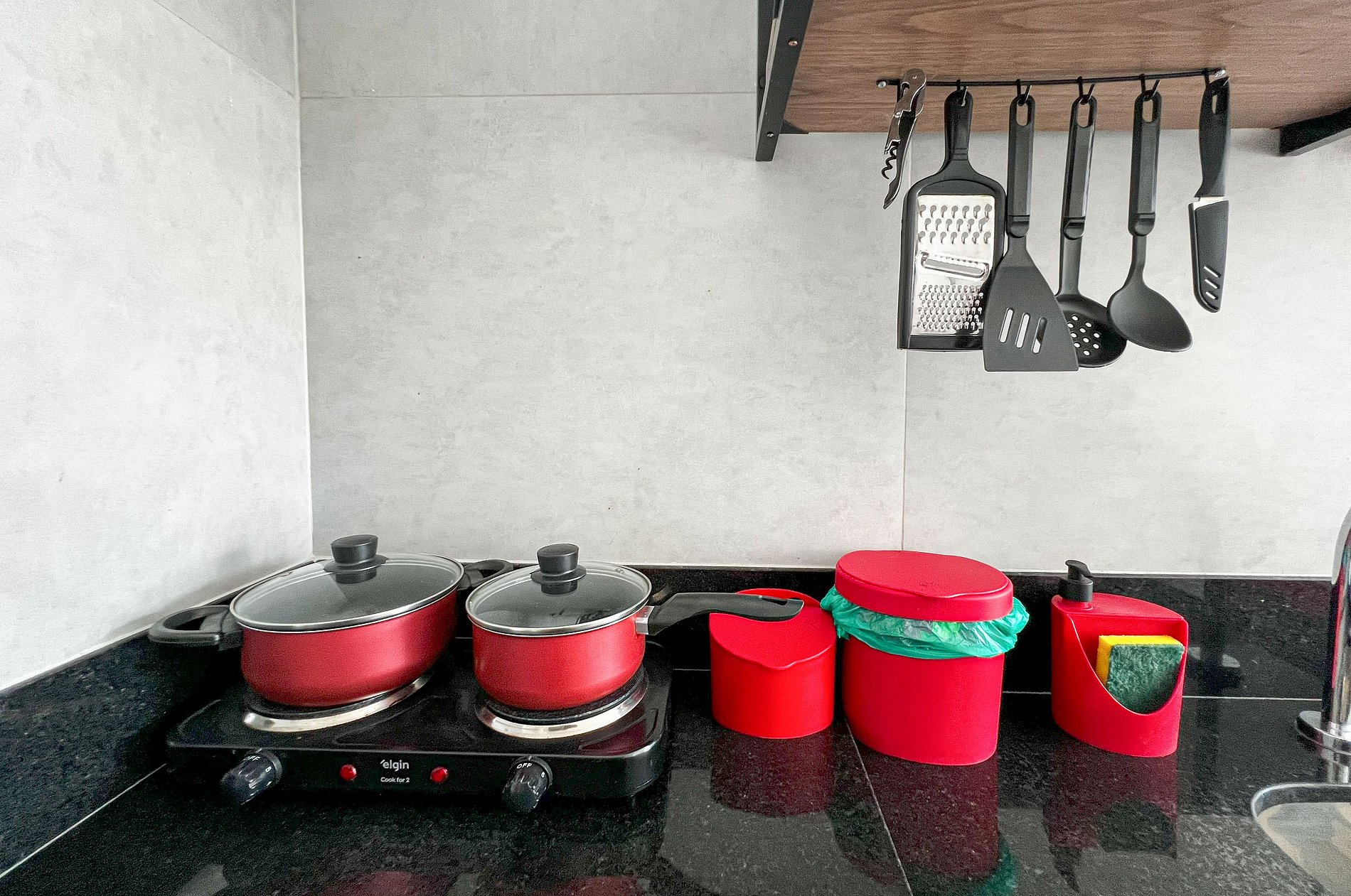 - Cozinha Compacta (Fogão Elétrico, Micro-ondas, Sanduicheira, Liquidificador, Cafeteira)