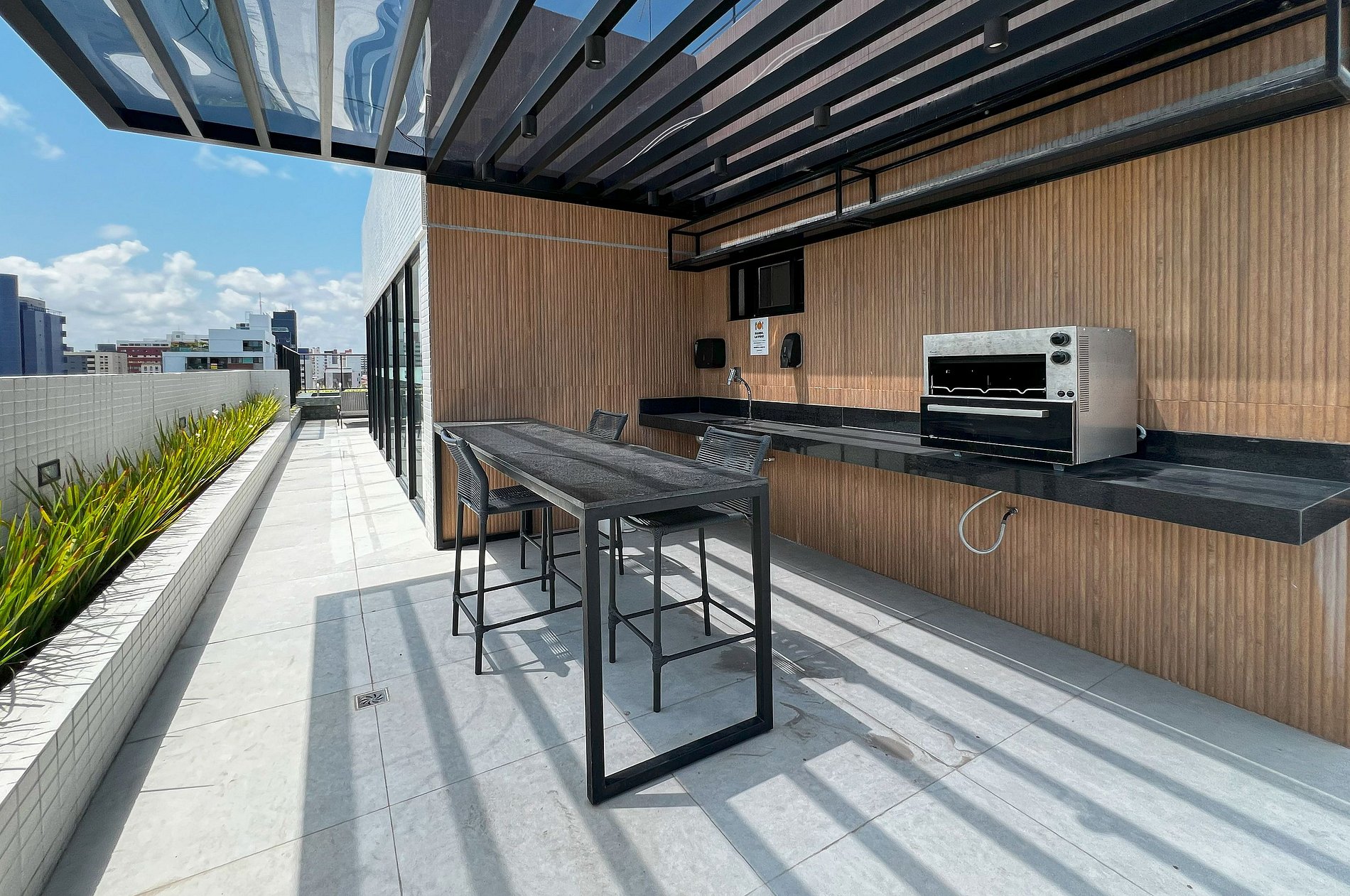 - O acesso é realizado por portaria eletrônica/chave virtual com monitoramento 24h por câmeras.