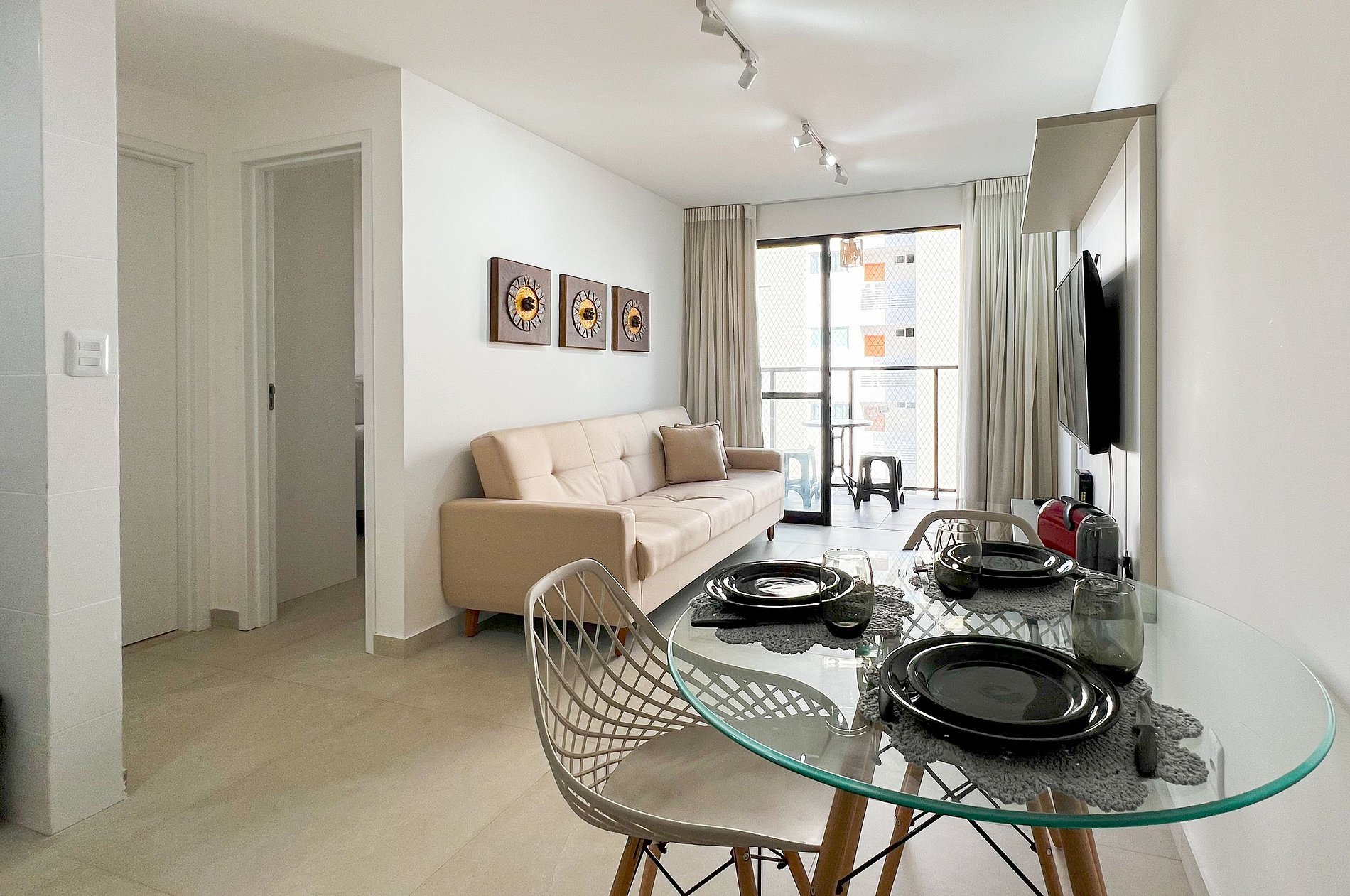 Amplo e confortável apartamento em Intermares, novinho (Montado em Dez/24), com sala, cozinha, varanda, banheiro e quarto, distribuídos em 40m². Acomoda até 4 pessoas (1 cama casal e 1 sofá cama casal), cozinha muito bem equipada, máquina de lavar roupas, ar condicionado no quarto, TV Smart na sala, fornecemos roupa de cama e banho nível hoteleiro.