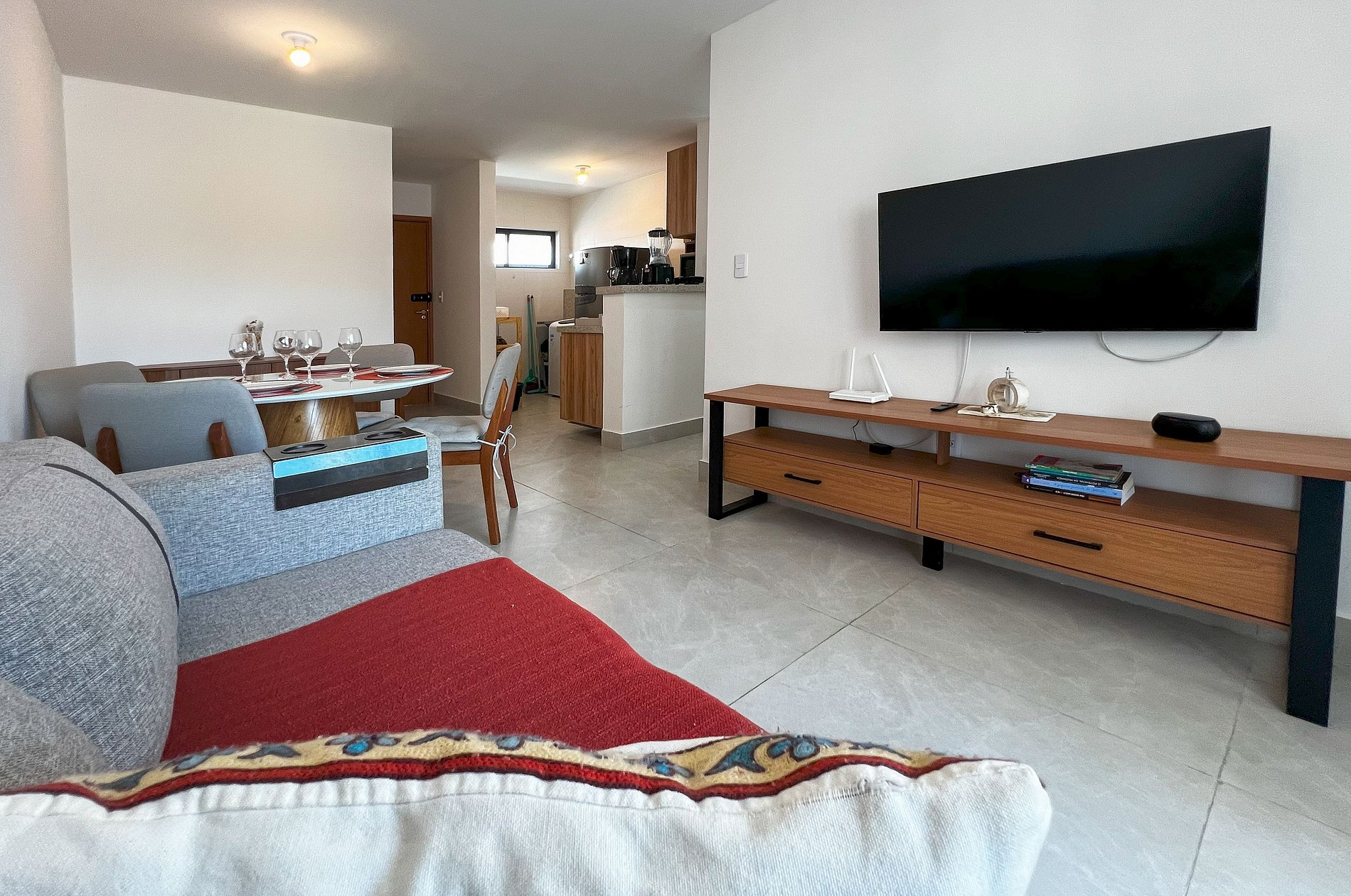 Aconchegante apartamento no Bessa, 300m da praia, podendo acomodar até 04 pessoas. Dispõe de uma suíte com cama de casal e ar condicionado e um quarto com duas camas de solteiro com ar condicionado. Sala com TV Smart e sofá, cozinha bastante equipada com fogão, cafeteira, liquidificador, micro-ondas e utensílios básicos de cozinha. O apartamento ainda tem uma máquina de lavar, facilitando sua estadia. O apartamento fica no 2º andar, sendo acessível por elevador, e contém 01 vaga de garagem.