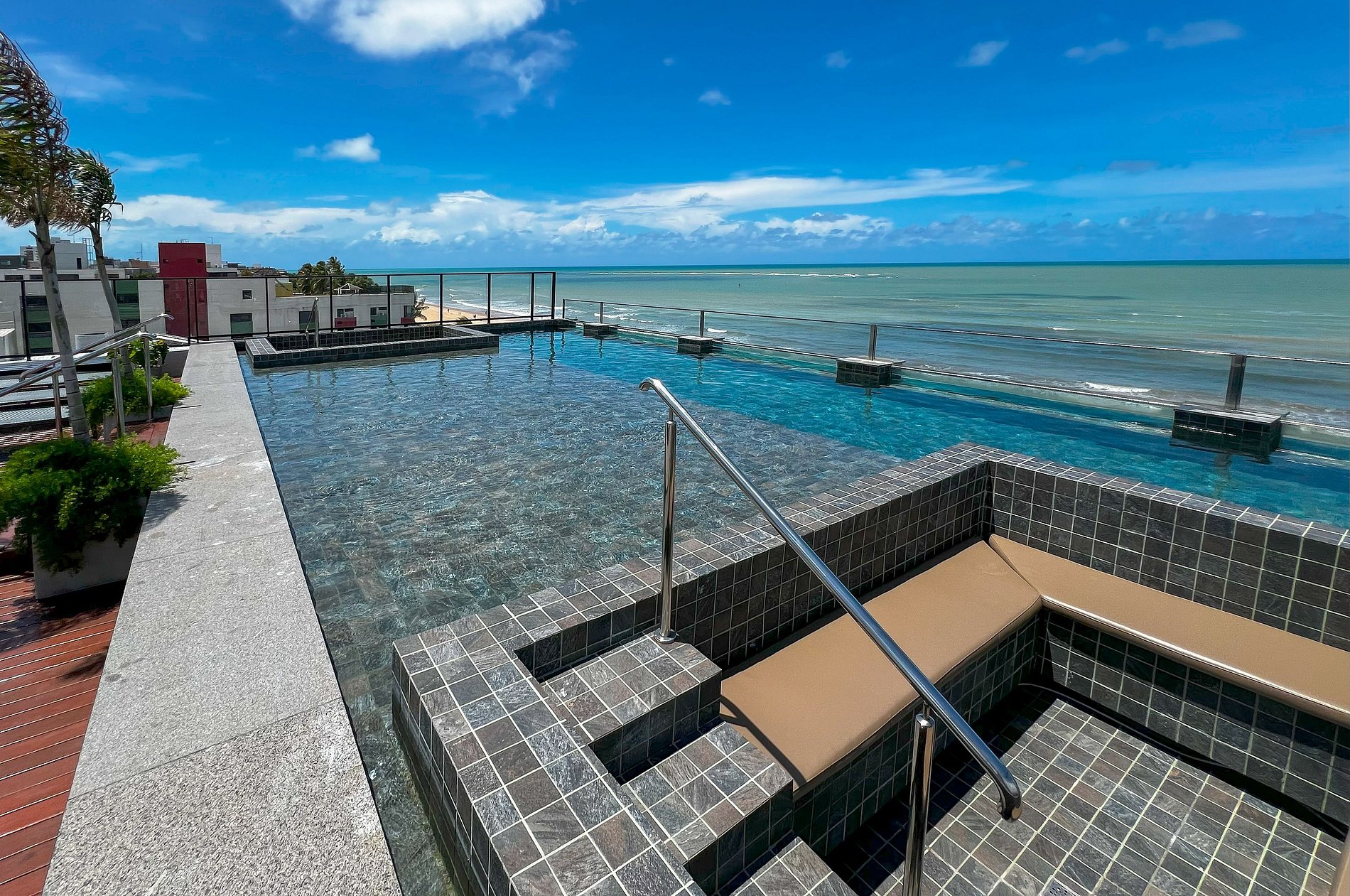 - Piscina com borda de vidro na cobertura