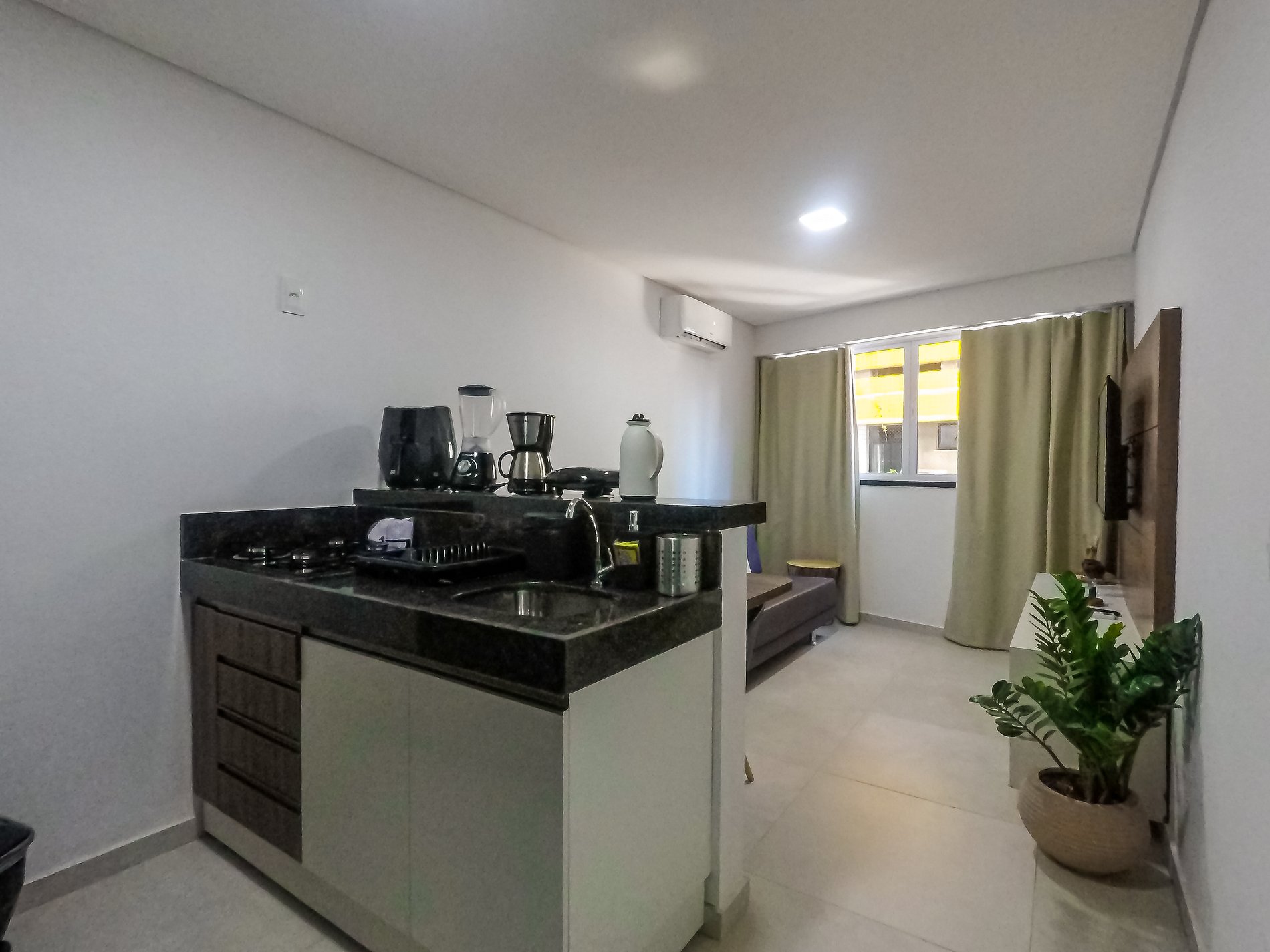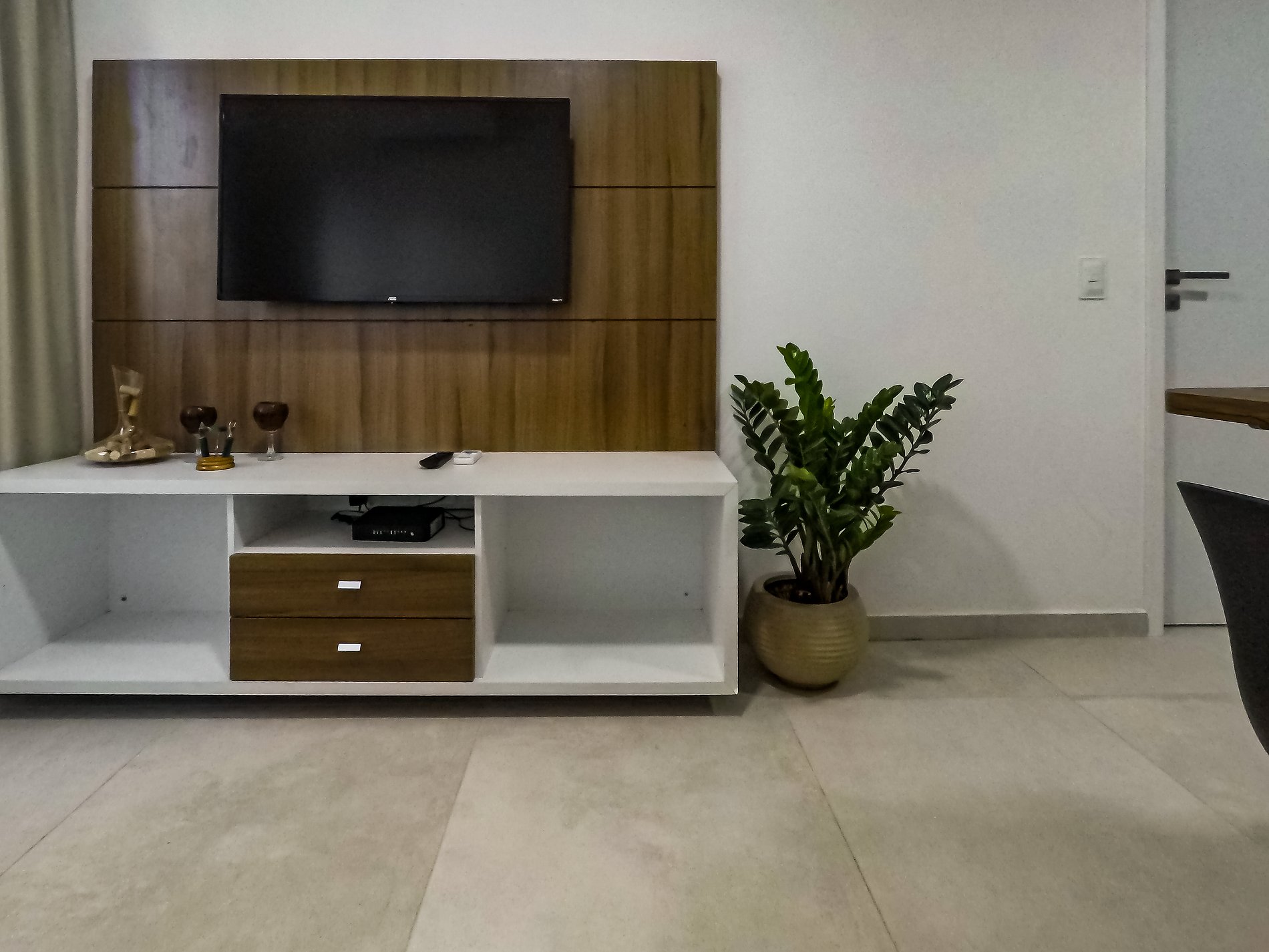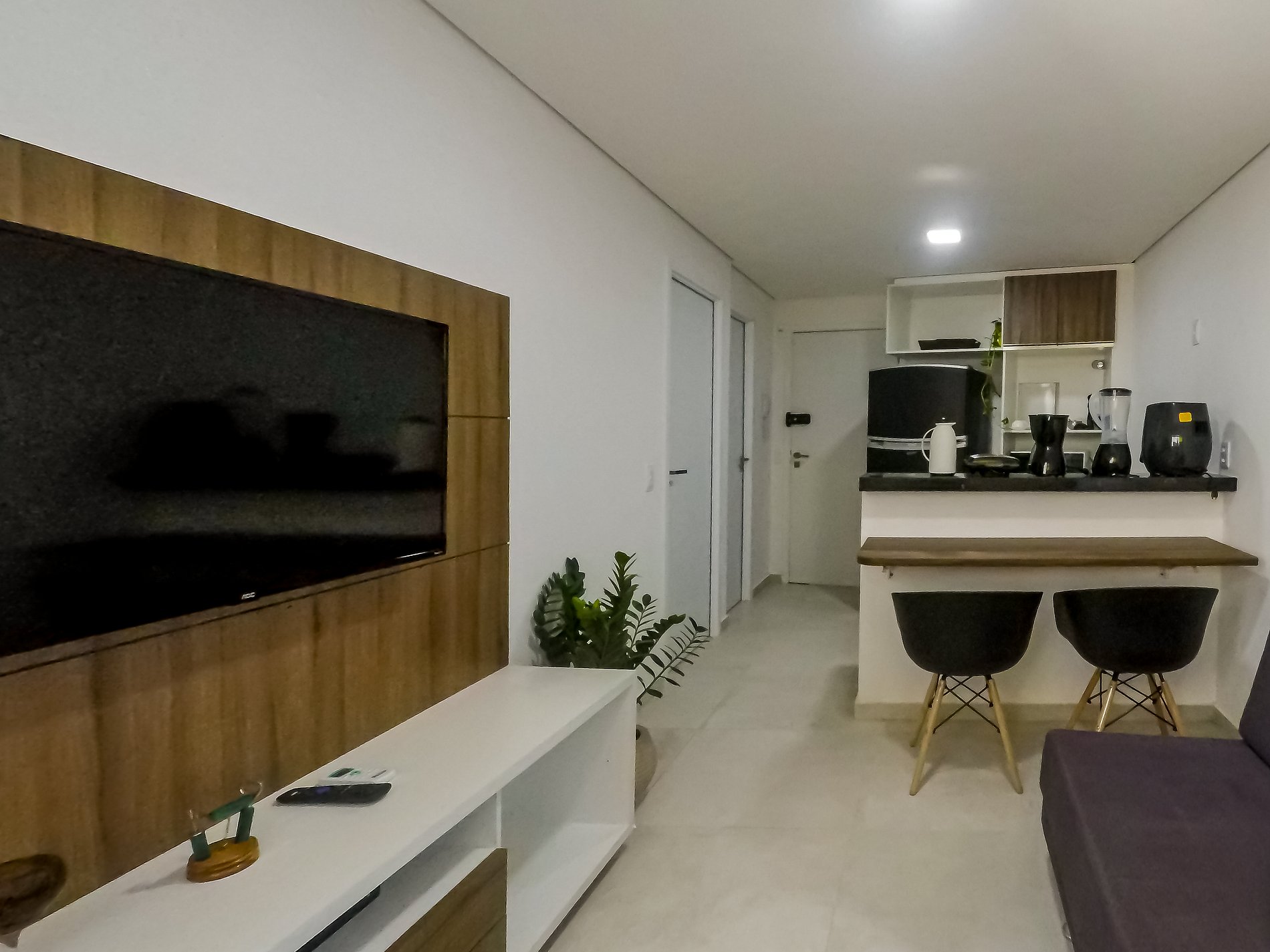 - Sala com sofá cama e TV