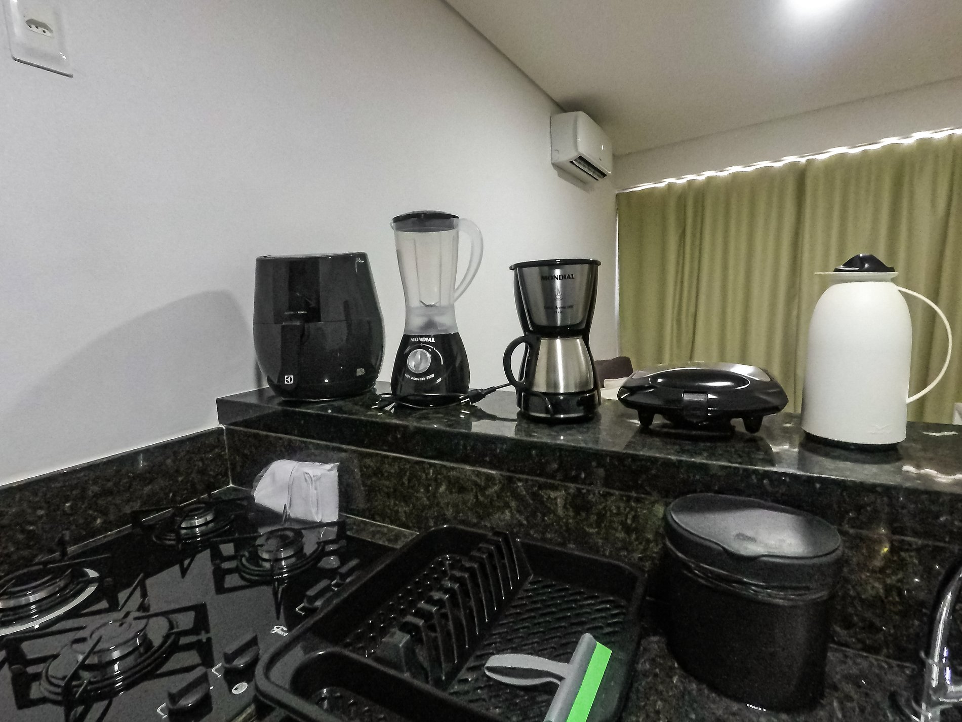 1. Desligar luzes, TV e ar-condicionado. Não precisa desligar a geladeira.