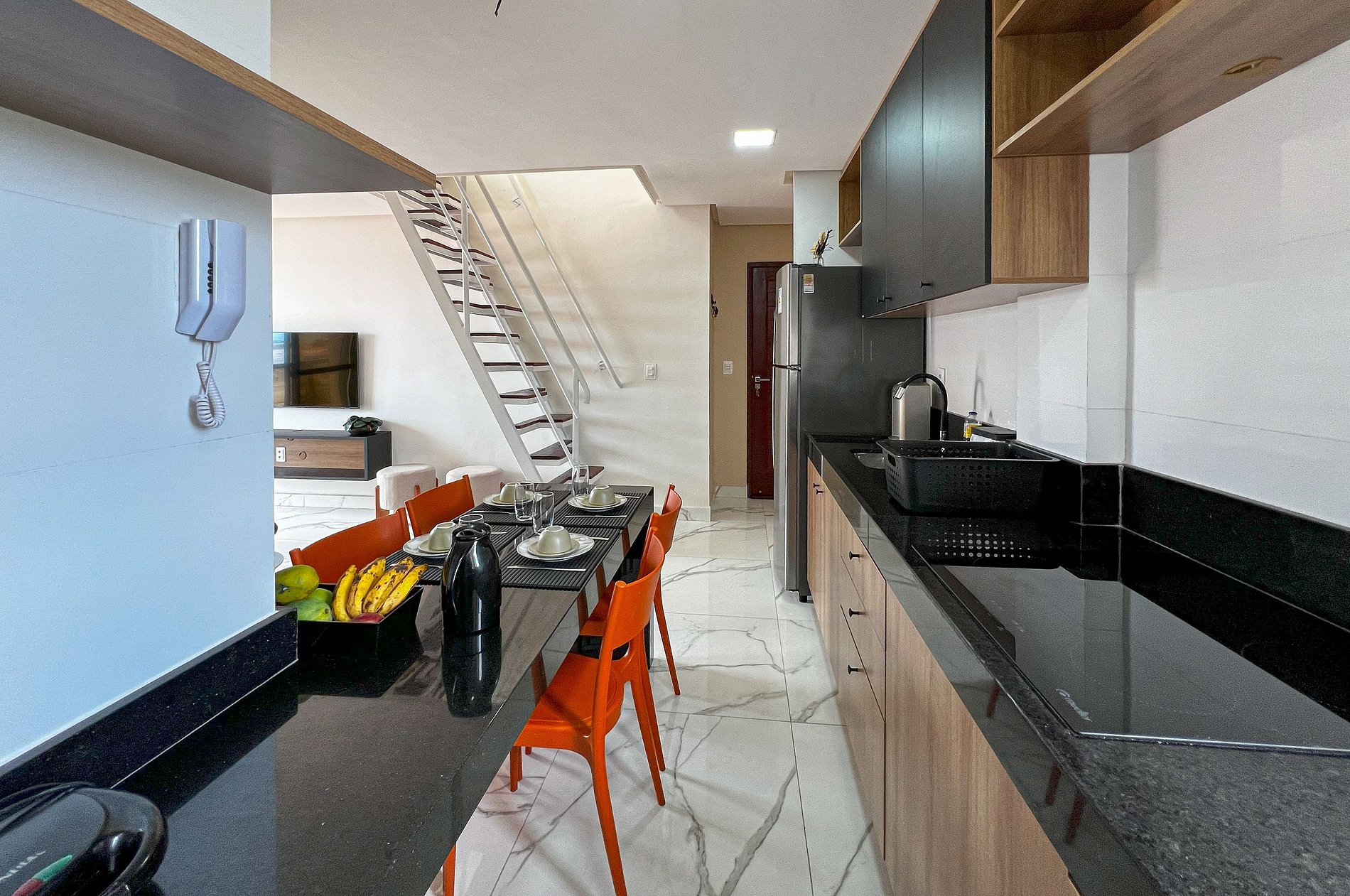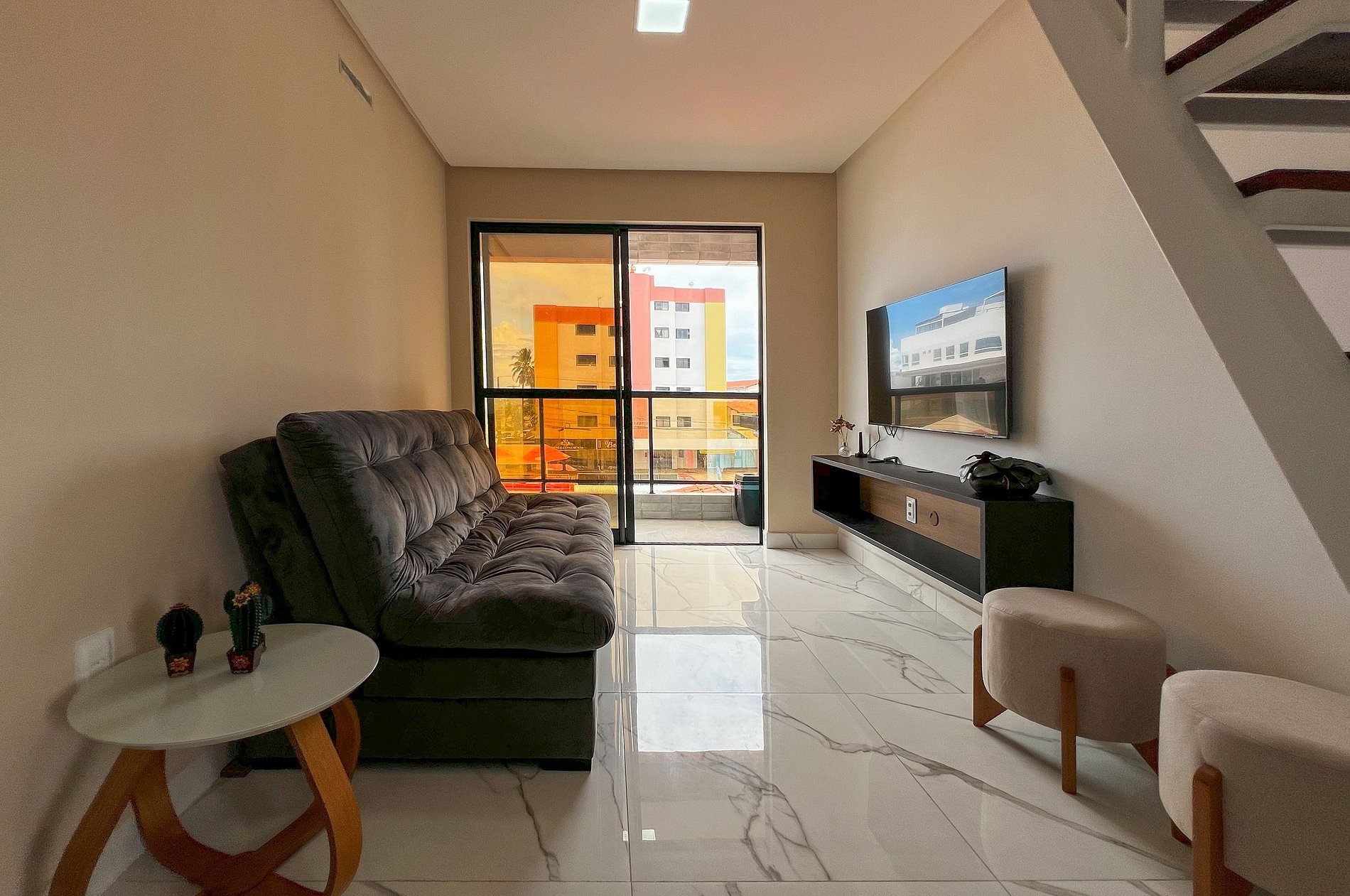 Charmoso apartamento na Praia do Bessa, o VILA ACONCHEGO RESIDENCE é um condomínio Familiar NOVO com apenas 9 unidades (entregue em Set/23), localizado apenas 200m do praia, pertinho de tudo que você precisa para maior comodidade (restaurantes, farmácias, padaria, posto combustível...), decoração moderna, cozinha bem equipada, 2 quartos, sendo 1 suíte master, ambos com ar condicionado, um local perfeito para descansar após um dia de praia. Na sala temos um confortável sofá cama e TV Smart. As cortinas são blackout nos quartos, temos Wi-Fi e oferecemos roupas de cama e banho. 1 vaga na garagem (cabe veículos pequenos/SUV médio).