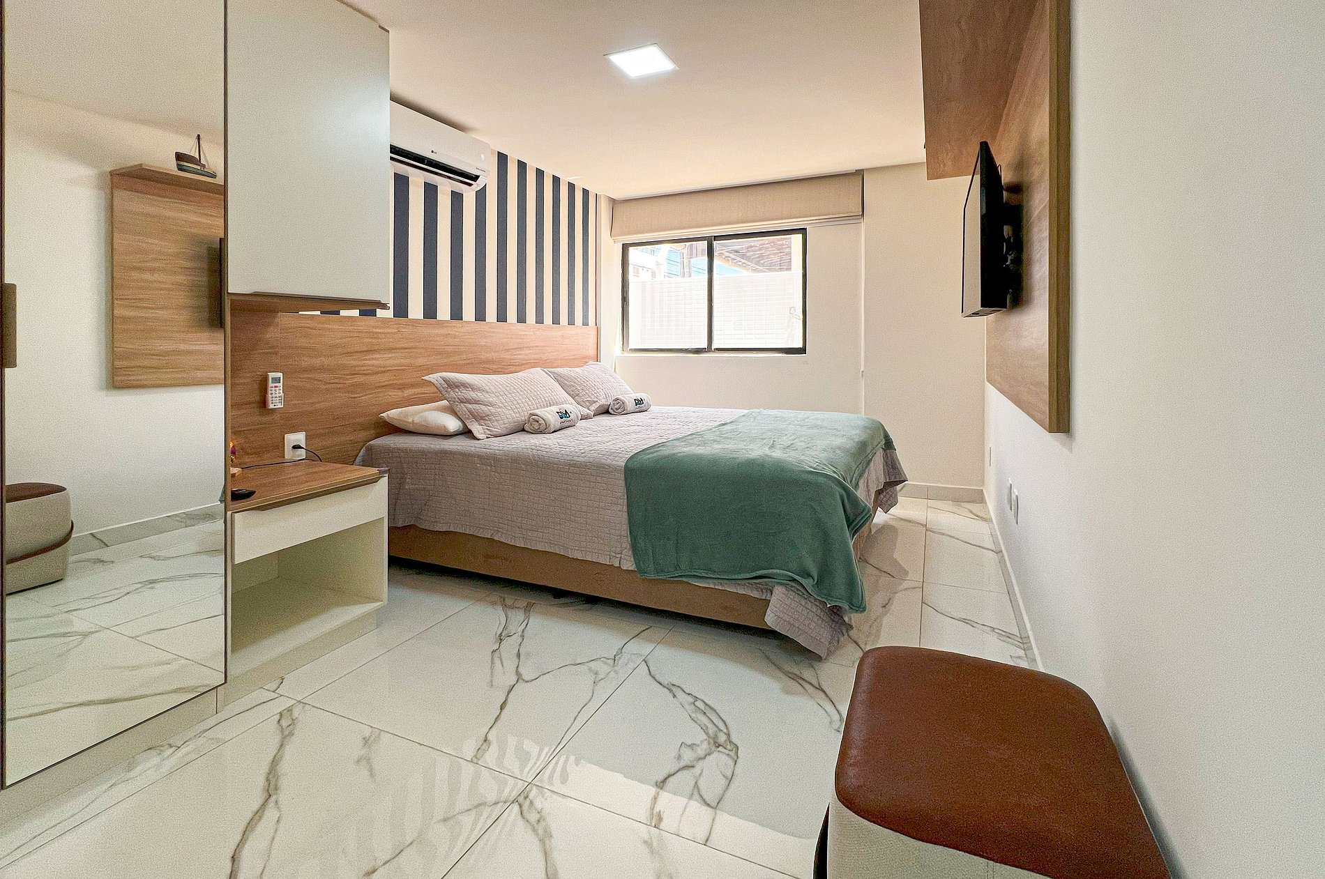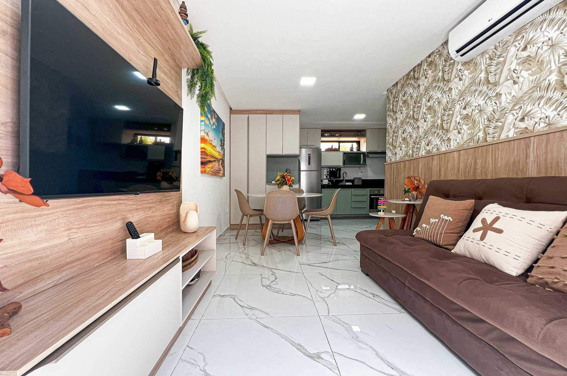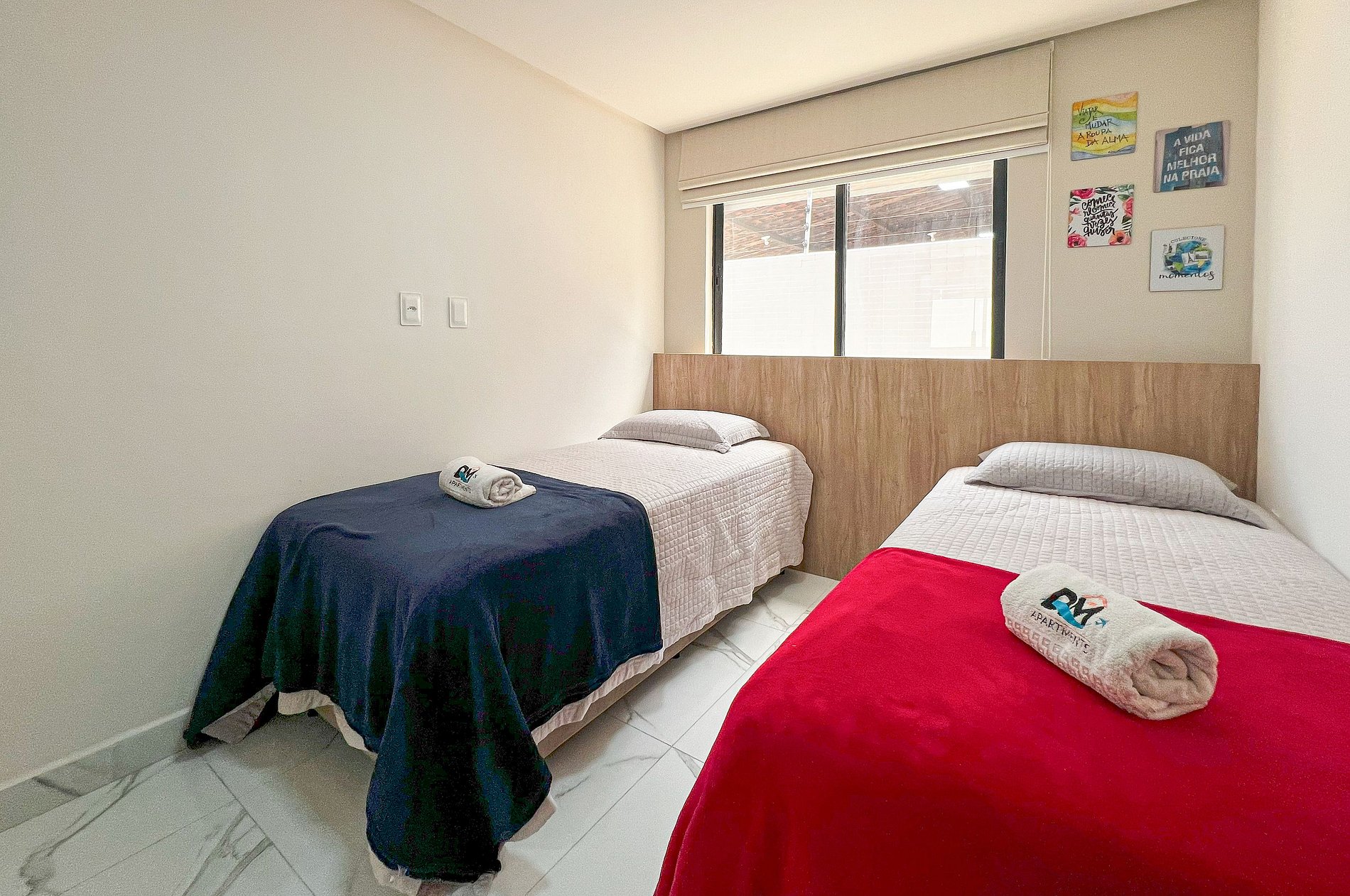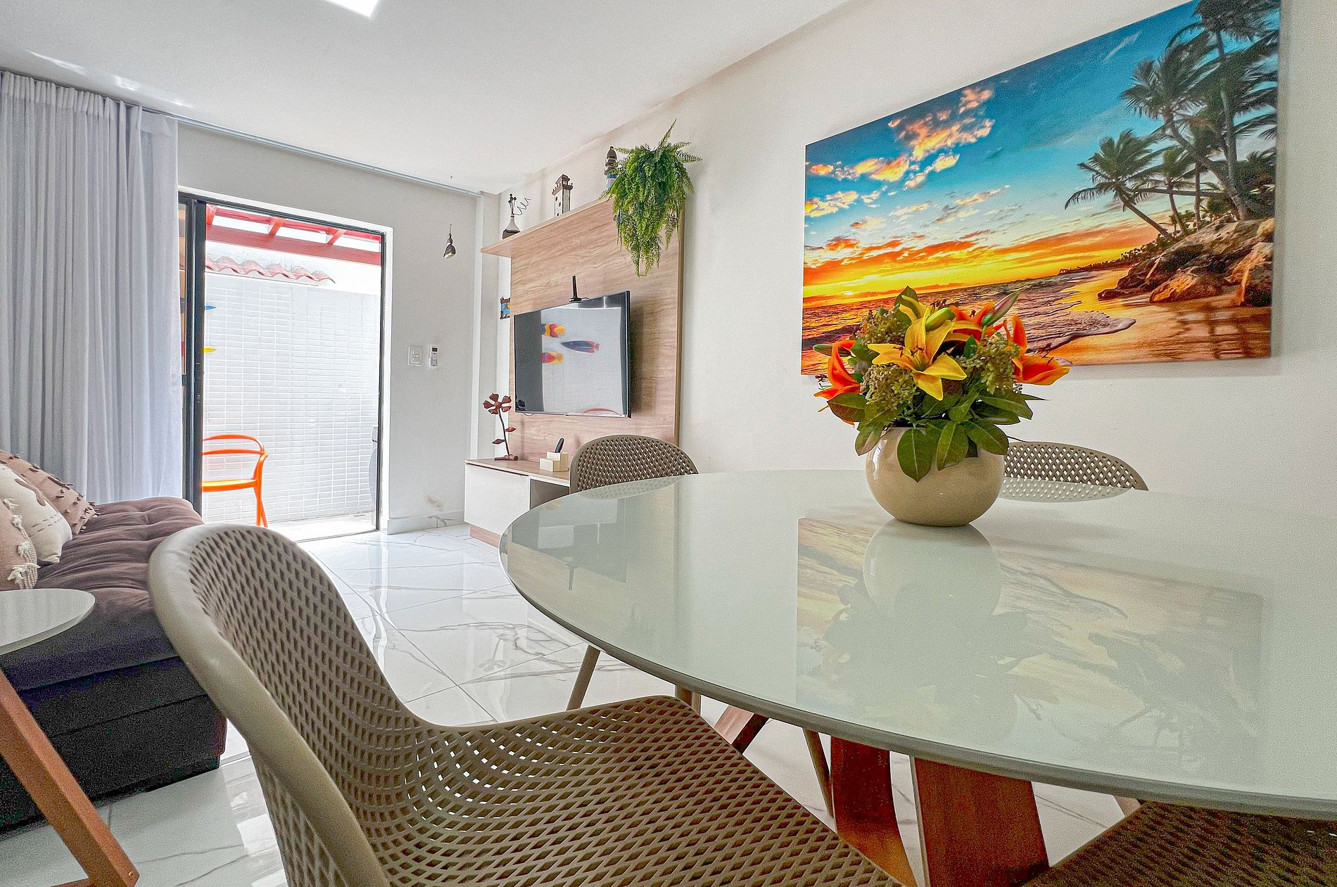 Charmoso apartamento TÉRREO na Praia do Bessa, o VILA ACONCHEGO RESIDENCE é um condomínio Familiar NOVO com apenas 9 unidades (entregue em Set/23), localizado apenas 200m da praia, pertinho de tudo que você precisa para maior comodidade (restaurantes, farmácias, padaria, posto combustível...), decoração moderna, cozinha super bem equipada, máquina lava e seca, 2 quartos, sendo 1 suíte master, ambos com ar condicionado, um local perfeito para descansar após um dia de praia. Na sala temos um confortável sofá cama, ar condicionado e TV Smart. As cortinas são blackout em todas as janelas, tem Wi-Fi e oferecemos roupas de cama e banho. 1 vaga na garagem, VARANDA TÉRREA SUPER CHARMOSA.