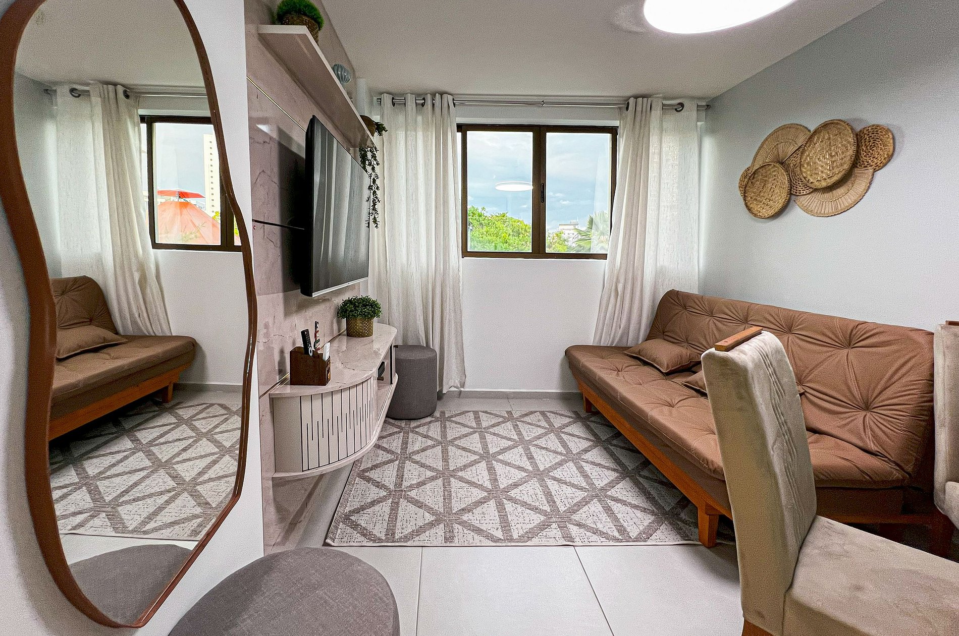 - Sala com Sofá Cama e TV Smart
