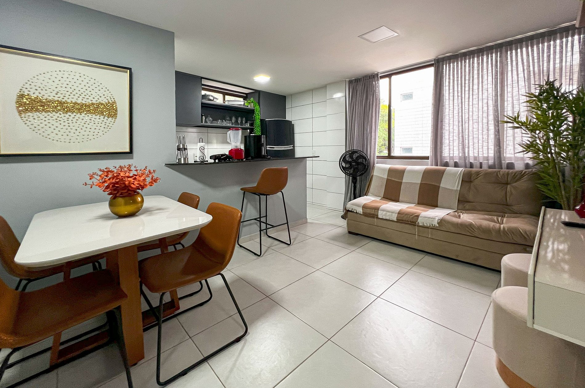 Aconchegante apartamento no FLAT LÍRIOS DO CABO BRANCO, apenas 1 quadra da praia do Cabo Branco, a melhor região para se hospedar em João Pessoa. Próximo ao Food Park Cabo Branco e Bar do Cuscuz. O flat é equipado de forma a trazer maior comodidade e conforto para nossos clientes. O apartamento está localizado no 2º andar, com 45m², tem 1 banheiro, 1 quarto com cama casal e 1 cama solteiro, decoração moderna, perfeito para descansar após um dia de praia ou no rooftop do complexo. O quarto ar condicionado, cortina e armários. Sala com sofá, TV e ar Condicionado. A cozinha é bem equipada com eletrodomésticos e utensílios.