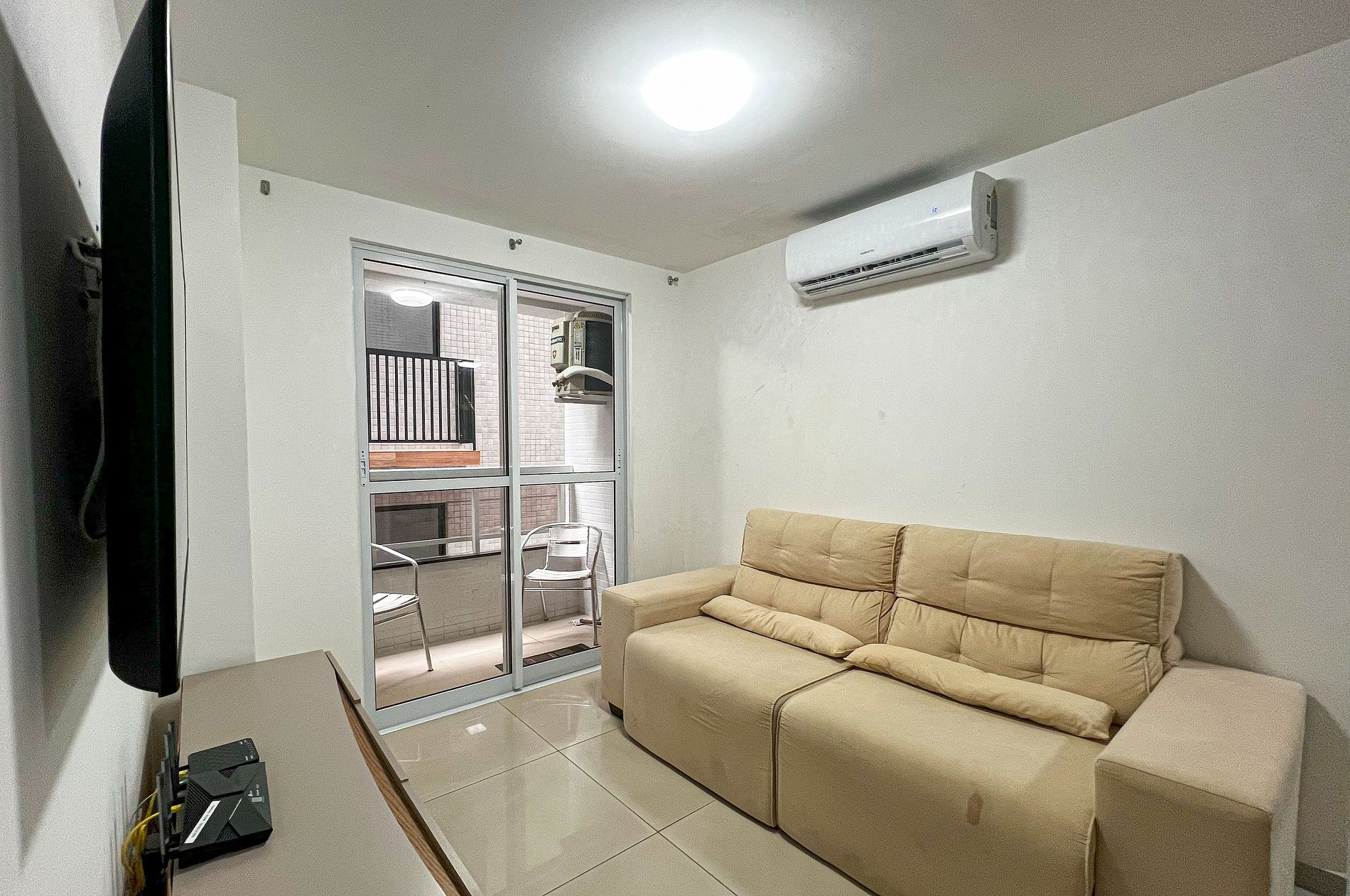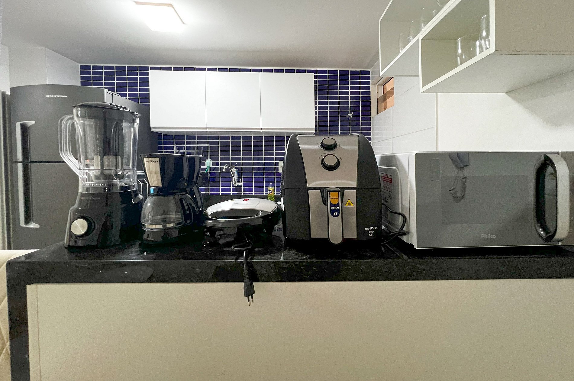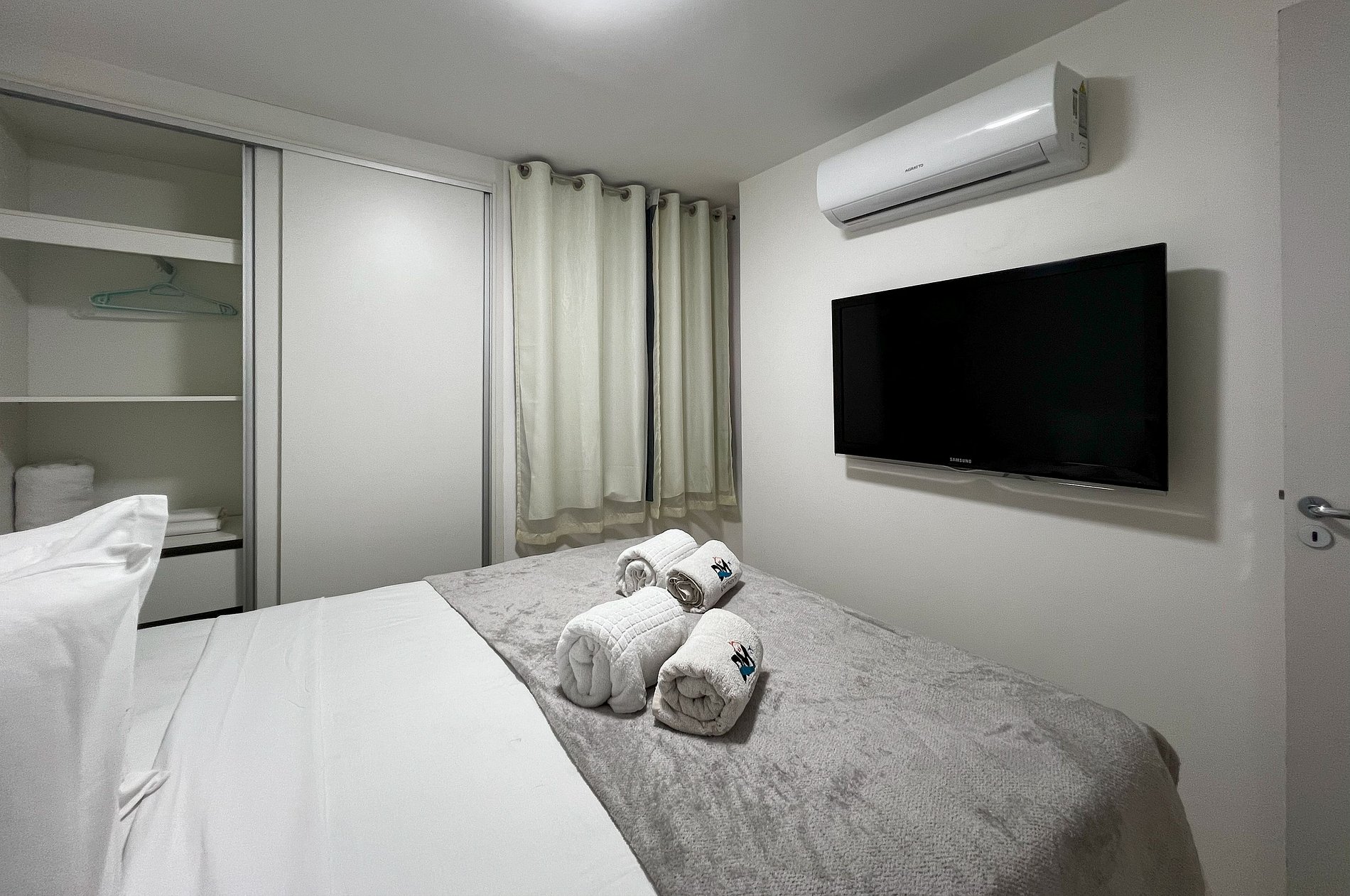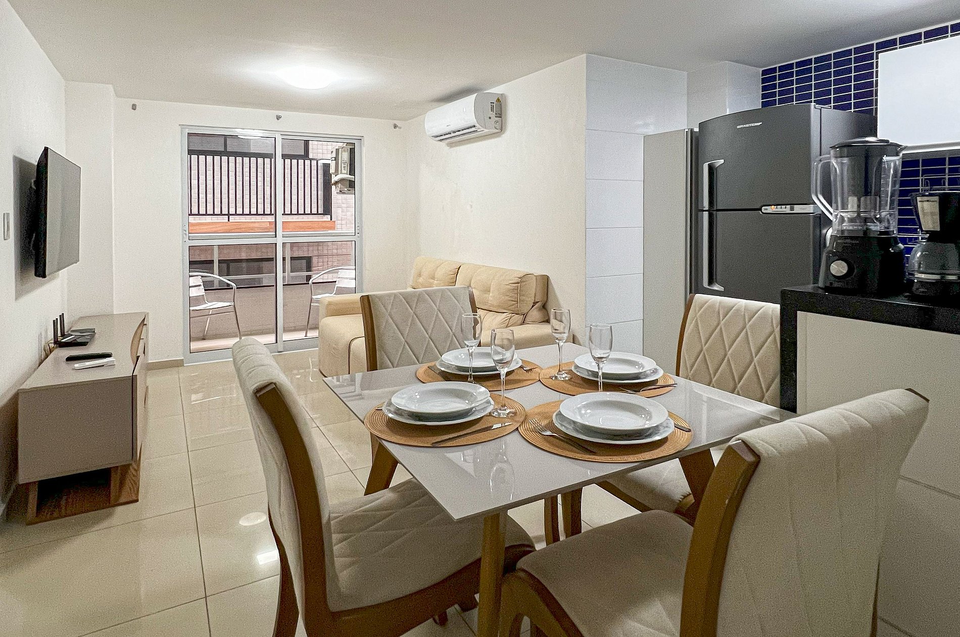 Aconchegante apartamento no ANTÔNIO THEOTÔNIO FLATS CABO BRANCO, apenas 1 quadra da praia do Cabo Branco, a melhor região para se hospedar em João Pessoa. Próximo ao Food Park Cabo Branco e Bar do Cuscuz. O flat é equipado de forma a trazer maior comodidade e conforto para nossos clientes. O apartamento está localizado no 2º andar, com 45m², tem 1 banheiro, 2 quartos com cama casal e 1 colchão extra solteiro, decoração clean, perfeito para descansar após um dia de praia ou no rooftop do complexo. Ambos quartos possuem ar condicionado, cortina e armários. Sala com Sofá, TV e Ar Condicionado. A cozinha é bem equipada com eletrodomésticos e utensílios.