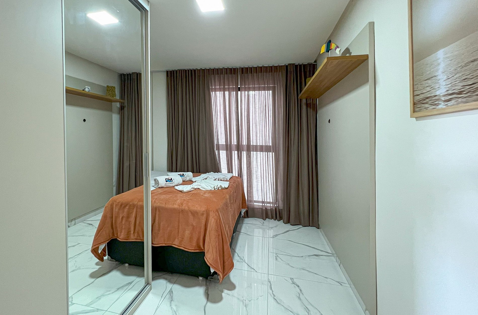Charmoso apartamento na Praia do Bessa, o VILA ACONCHEGO RESIDENCE é um condomínio Familiar NOVO com apenas 9 unidades (entregue em Set/23), localizado apenas 200m do praia, pertinho de tudo que você precisa para maior comodidade (restaurantes, farmácias, padaria, posto combustível...), decoração moderna, cozinha super bem equipada, 2 quartos, sendo 1 suíte, ambos com ar condicionado, um local perfeito para descansar após um dia de praia. Na sala temos um confortável sofá cama, ar condicionado e TV Smart. As cortinas são blackout em todas as janelas, temos WiFi e oferecemos roupas de cama e banho. 1 vaga na garagem (cabe veículos pequenos/SUV médio).