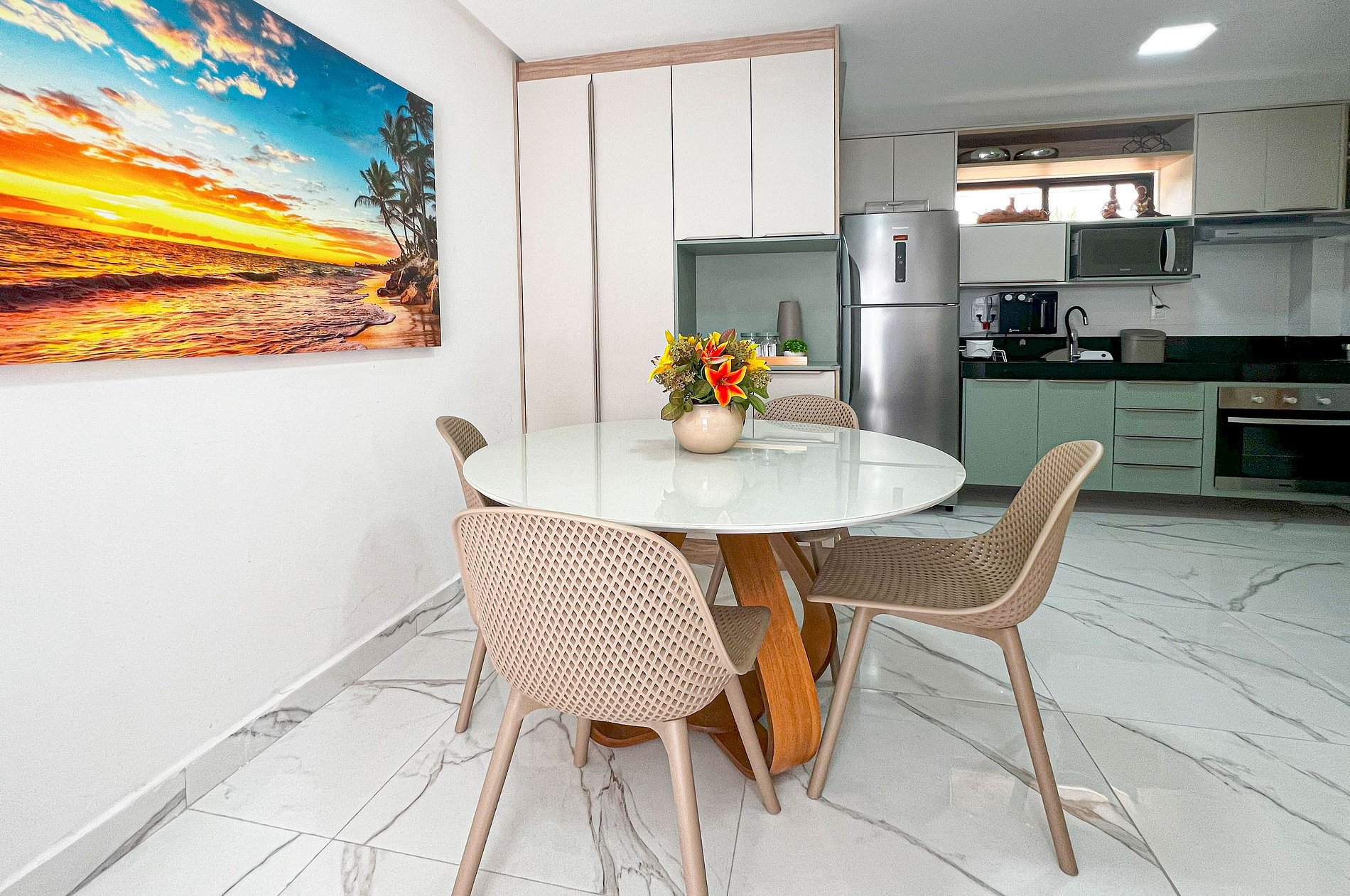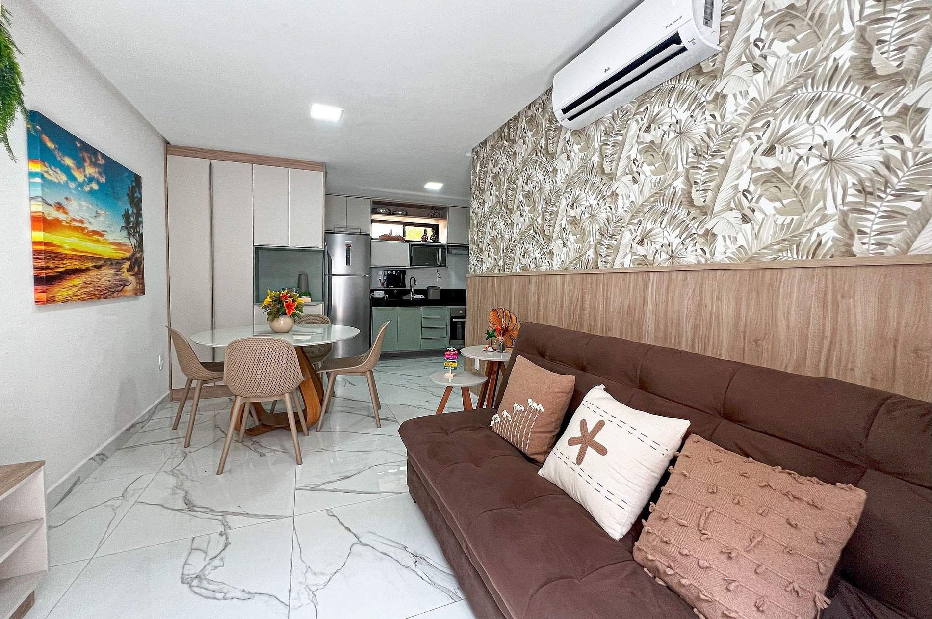 Charmoso apartamento TÉRREO na Praia do Bessa, o VILA ACONCHEGO RESIDENCE é um condomínio Familiar NOVO com apenas 9 unidades (entregue em Set/23), localizado apenas 200m da praia, pertinho de tudo que você precisa para maior comodidade (restaurantes, farmácias, padaria, posto combustível...), decoração moderna, cozinha super bem equipada, máquina lava e seca, 2 quartos, sendo 1 suíte master, ambos com ar condicionado, um local perfeito para descansar após um dia de praia. Na sala temos um confortável sofá cama, ar condicionado e TV Smart. As cortinas são blackout em todas as janelas, tem Wi-Fi e oferecemos roupas de cama e banho. 1 vaga na garagem, VARANDA TÉRREA SUPER CHARMOSA.