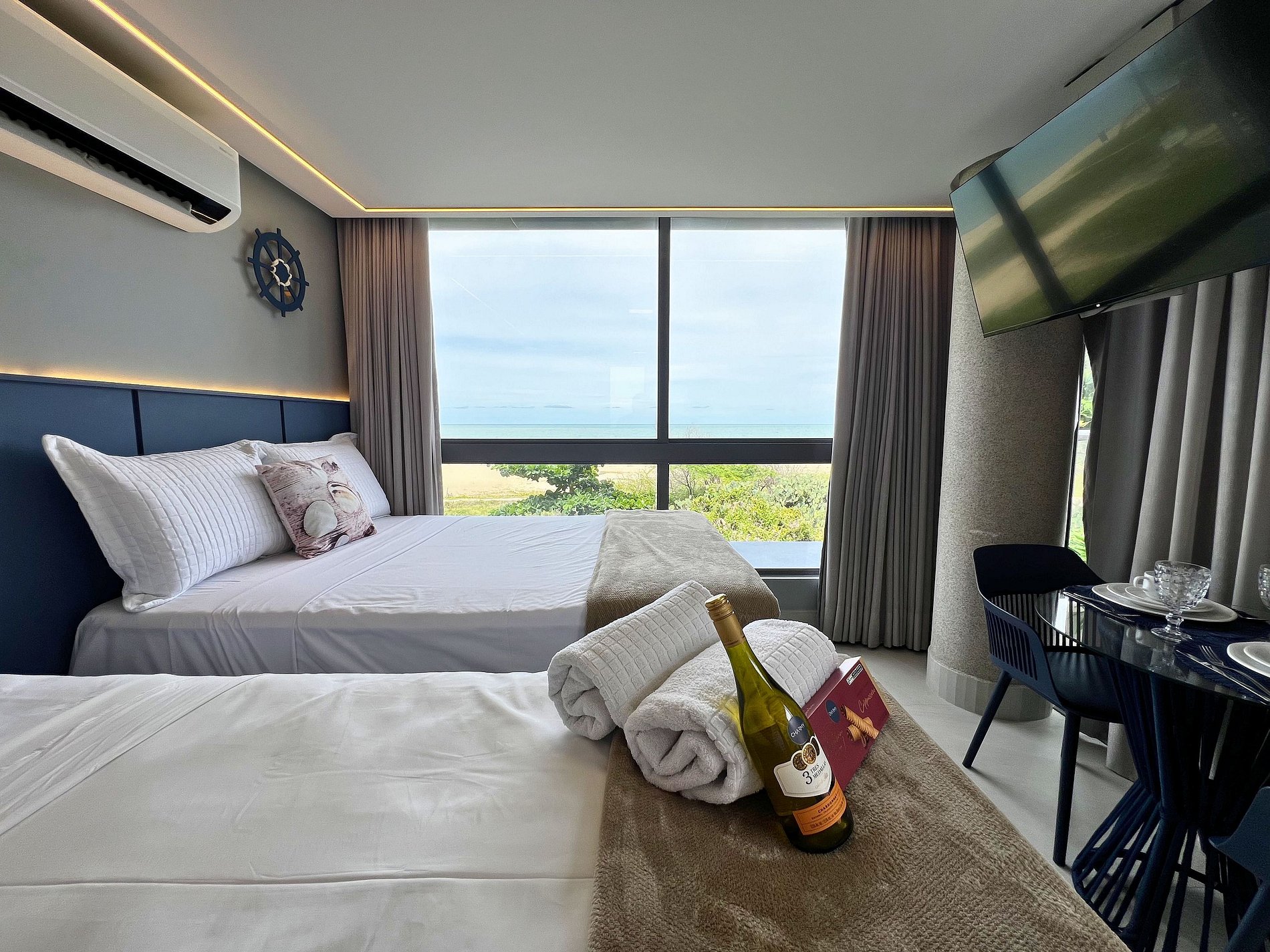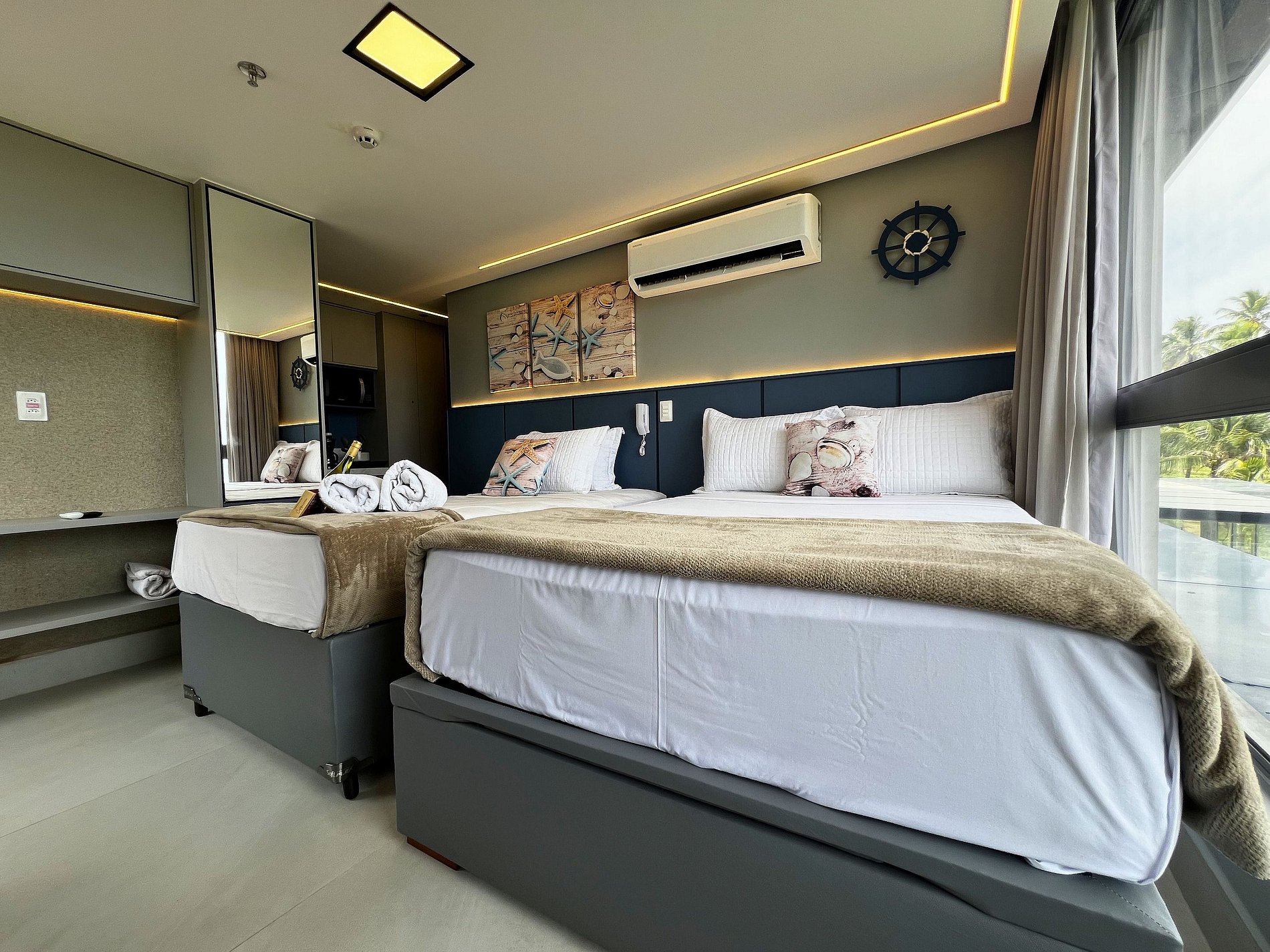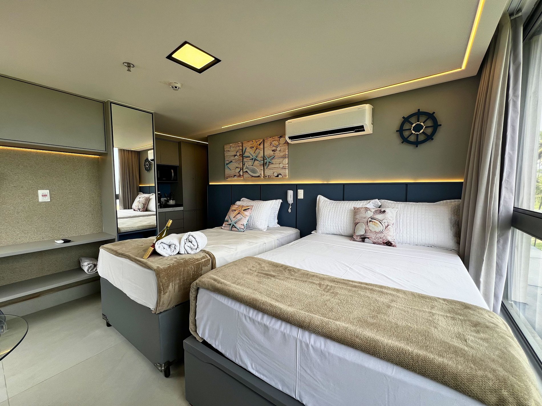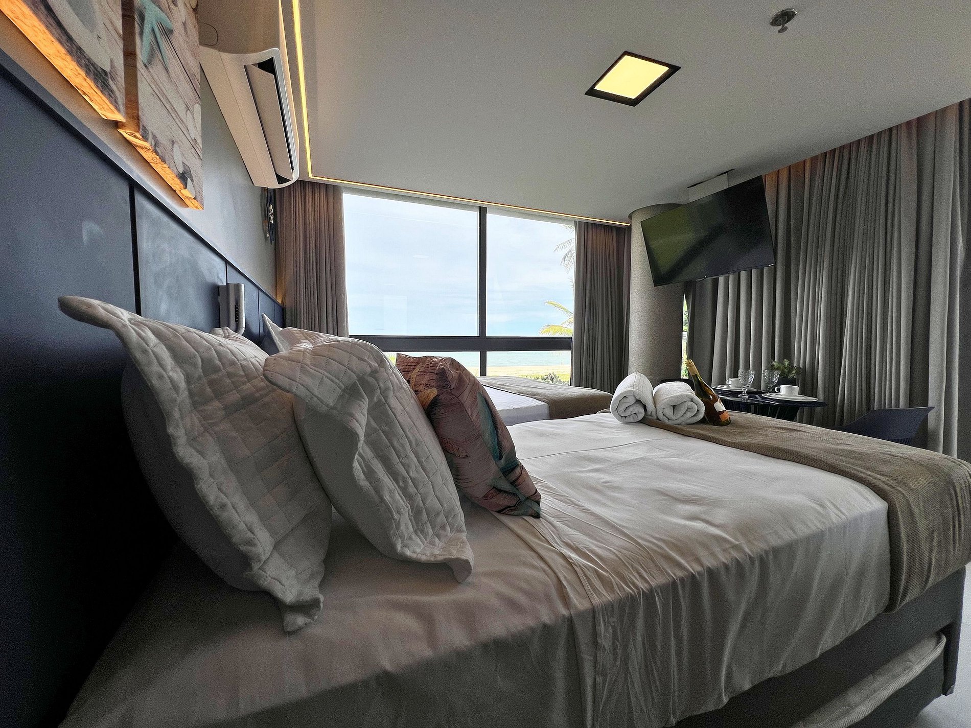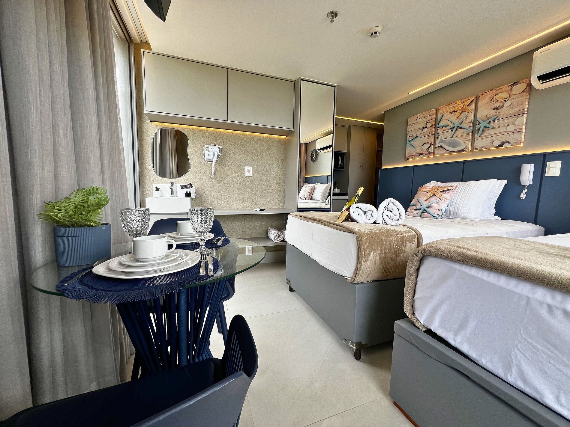 Apartamento LUXO no SETAI AQUAMARIS JARDIM OCEANIA, frente mar, varnda ampla e vista panorâmica, localizado na beira mar da praia do "Caribessa", a melhor região para se hospedar em João Pessoa. Sua localização priilegiada, está próxima ao Mag Shopping, diversos bares/restaurantes, padarias, farmácias, bancos, frutaria, salão de beleza e muitos outros comércios. O complexo conta com recepção hoteleira 24h, sistema de segurança, acesso as áreas comum por facial, mini market, academia, estacionamento com vagas rotativas, elevador, acesso a praia, restaurante (previsto funcionamento em Mai/26), piscina ampla e com vista mar, espaços para refeições, sauna, jacuzzi ao ar livre e uma vista mar deslumbrante. O Setai Aquamaris, disponibiliza para os hóspedes amenidades de praia, cadeira, guarda sol, caiaque, bicicletas, dentre outros. Também conta com lavaderia self service. O flat é equipado de forma a trazer maior comodidade e conforto para nossos clientes. Com decoração moderna e acolhedora, mini cozinha bem equipada com frigobar, cafeteira expresso 3 corações, microondas, cafeteira comum, sanduicheira e utensílios básicos de cozinha. (não temos forno), perfeito para descansar após um dia de praia ou no rooftop do complexo. Para seu conforto, disponibilizamos roupa de cama e banho, toalhas de praia, secador de cabelo, ar condicionado, TV Smart e banheiro completo (ducha quente).