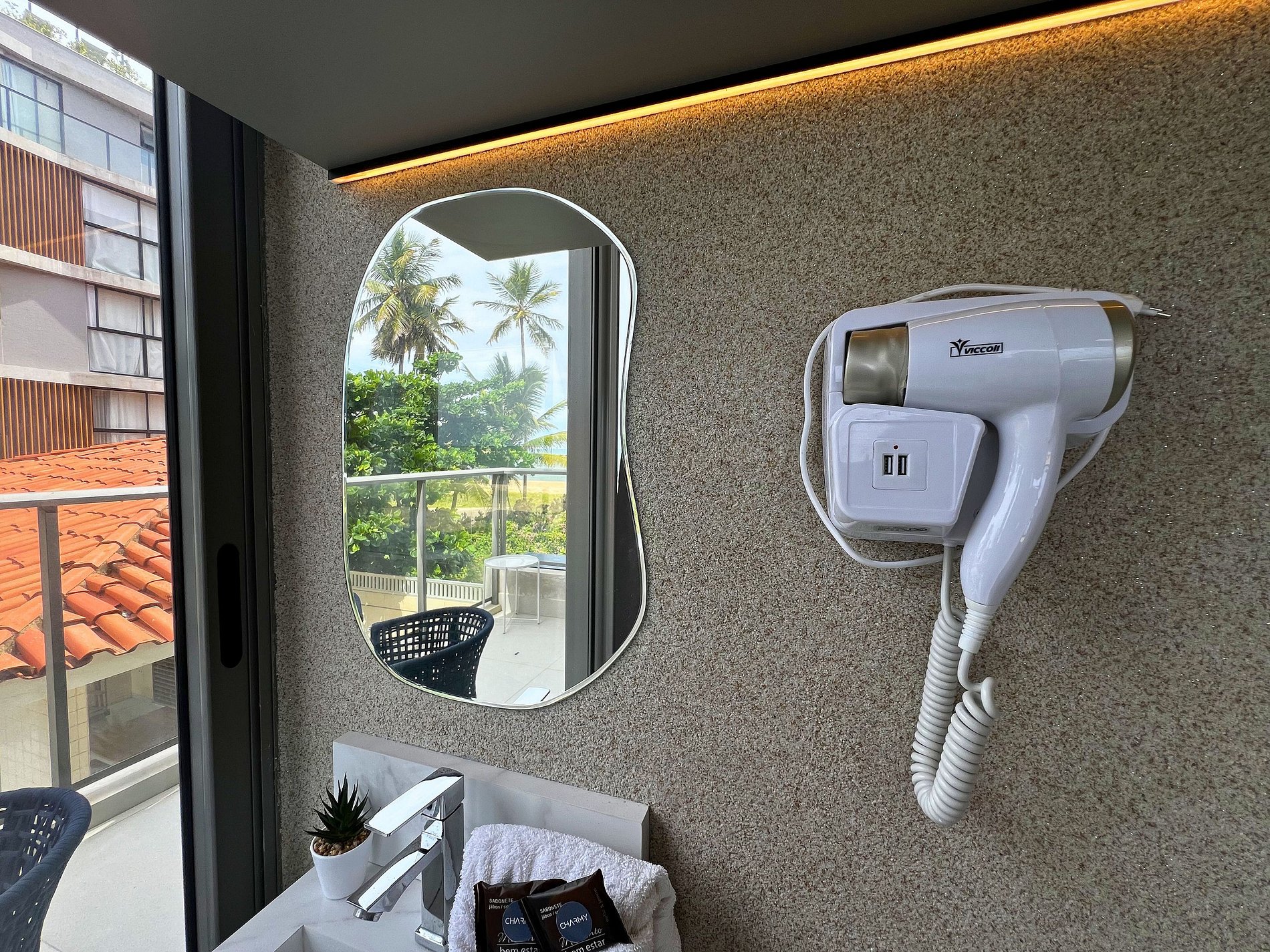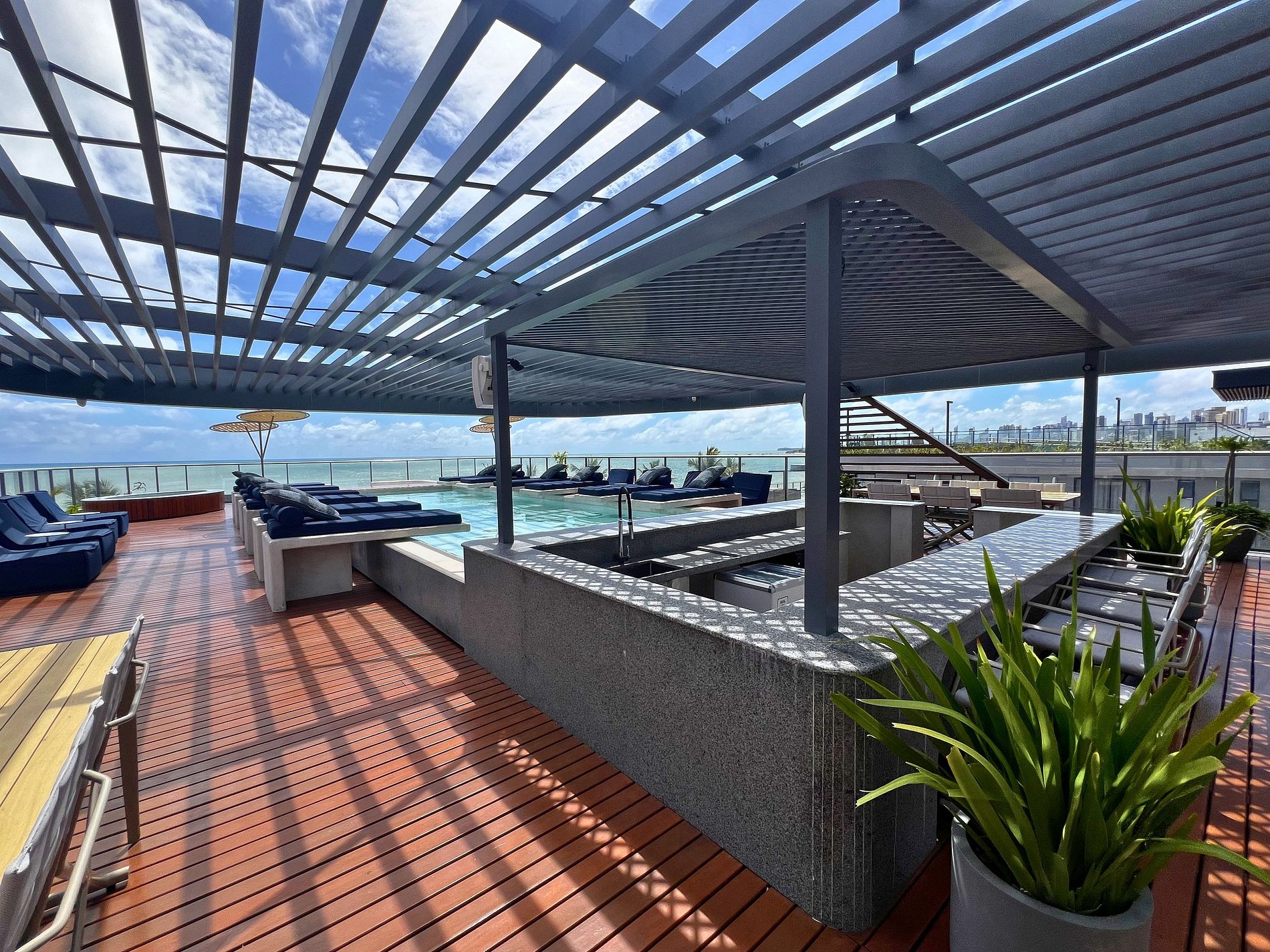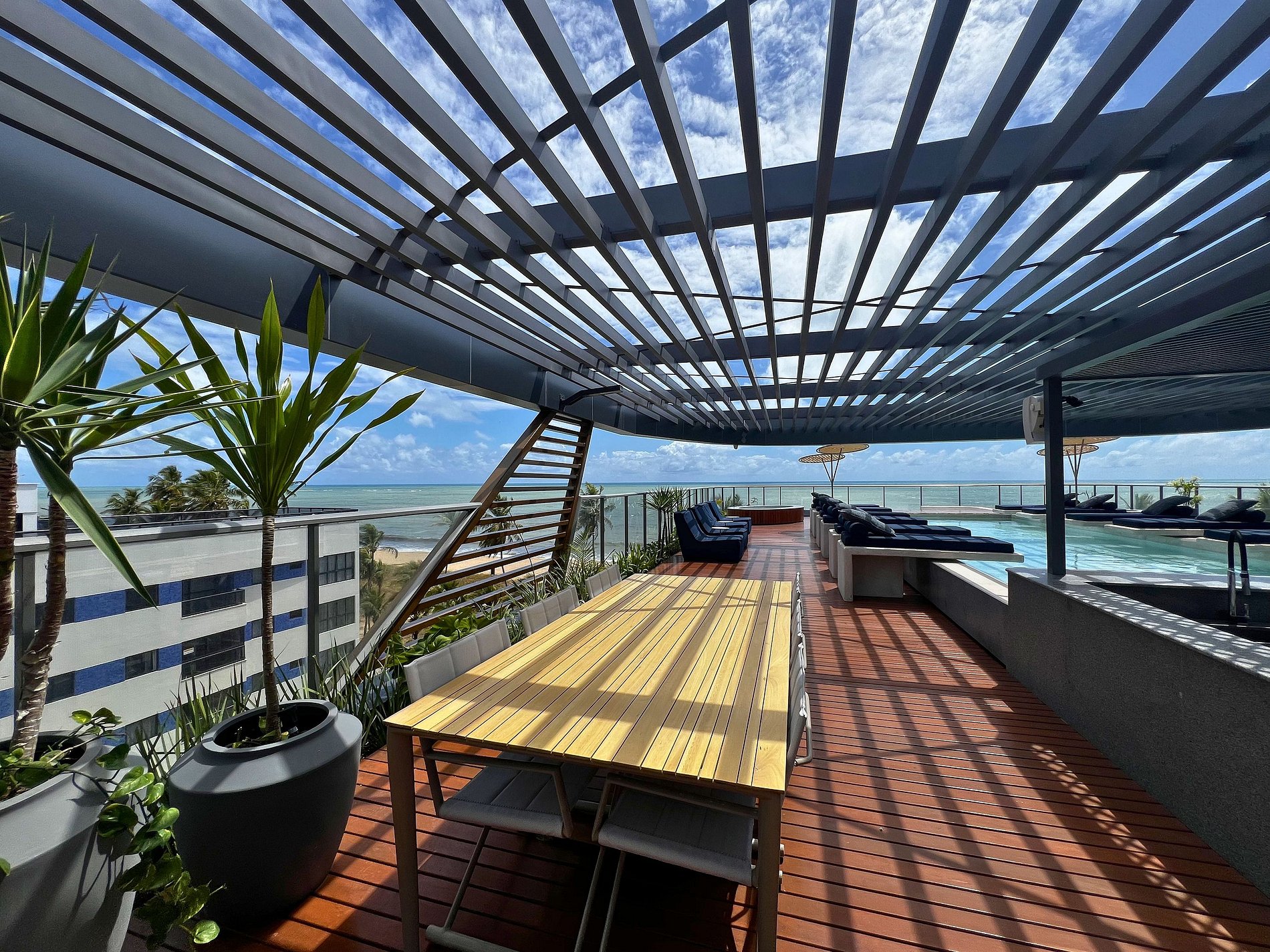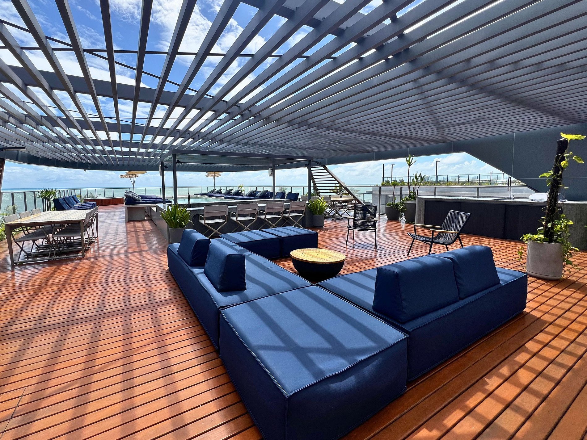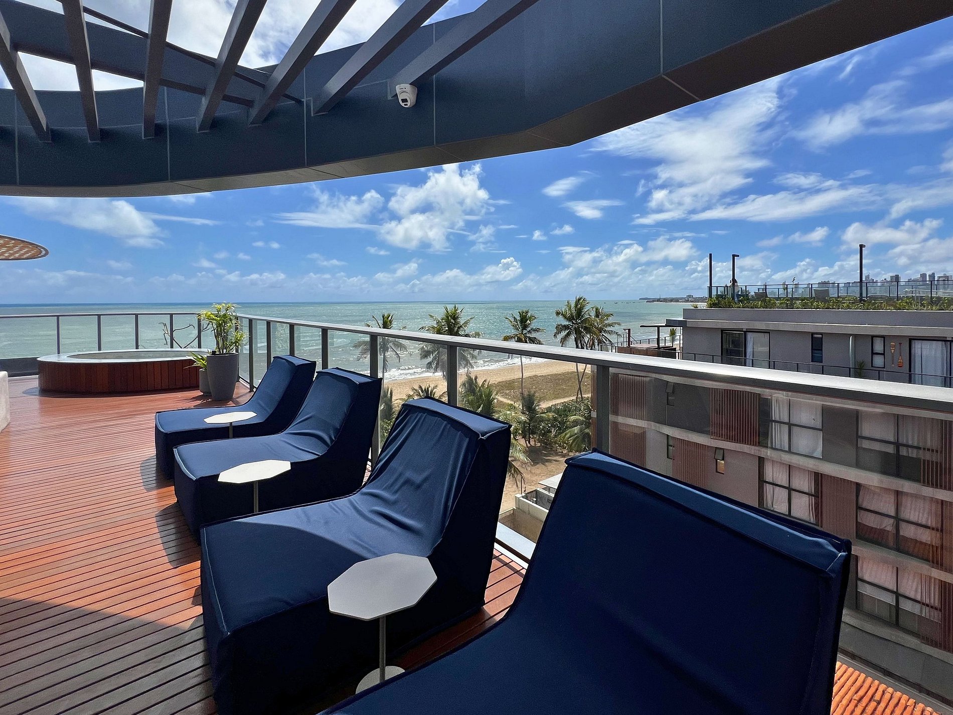 Apartamento LUXO no SETAI AQUAMARIS JARDIM OCEANIA, frente mar, varnda ampla e vista panorâmica, localizado na beira mar da praia do "Caribessa", a melhor região para se hospedar em João Pessoa. Sua localização priilegiada, está próxima ao Mag Shopping, diversos bares/restaurantes, padarias, farmácias, bancos, frutaria, salão de beleza e muitos outros comércios. O complexo conta com recepção hoteleira 24h, sistema de segurança, acesso as áreas comum por facial, mini market, academia, estacionamento com vagas rotativas, elevador, acesso a praia, restaurante (previsto funcionamento em Mai/26), piscina ampla e com vista mar, espaços para refeições, sauna, jacuzzi ao ar livre e uma vista mar deslumbrante. O Setai Aquamaris, disponibiliza para os hóspedes amenidades de praia, cadeira, guarda sol, caiaque, bicicletas, dentre outros. Também conta com lavaderia self service. O flat é equipado de forma a trazer maior comodidade e conforto para nossos clientes. Com decoração moderna e acolhedora, mini cozinha bem equipada com frigobar, cafeteira expresso 3 corações, microondas, cafeteira comum, sanduicheira e utensílios básicos de cozinha. (não temos forno), perfeito para descansar após um dia de praia ou no rooftop do complexo. Para seu conforto, disponibilizamos roupa de cama e banho, toalhas de praia, secador de cabelo, ar condicionado, TV Smart e banheiro completo (ducha quente).