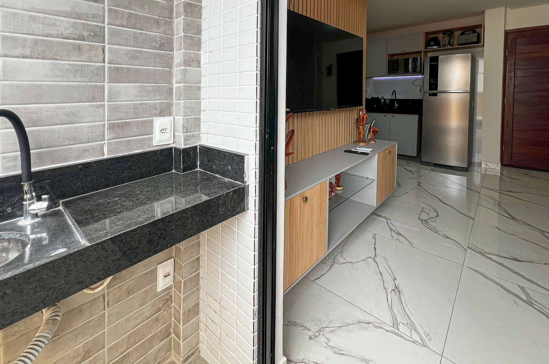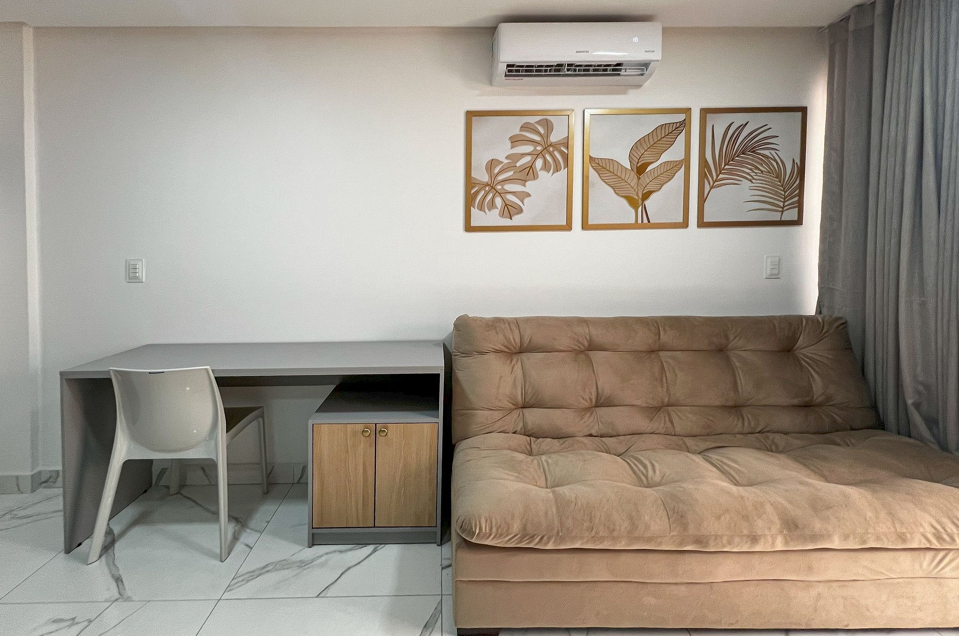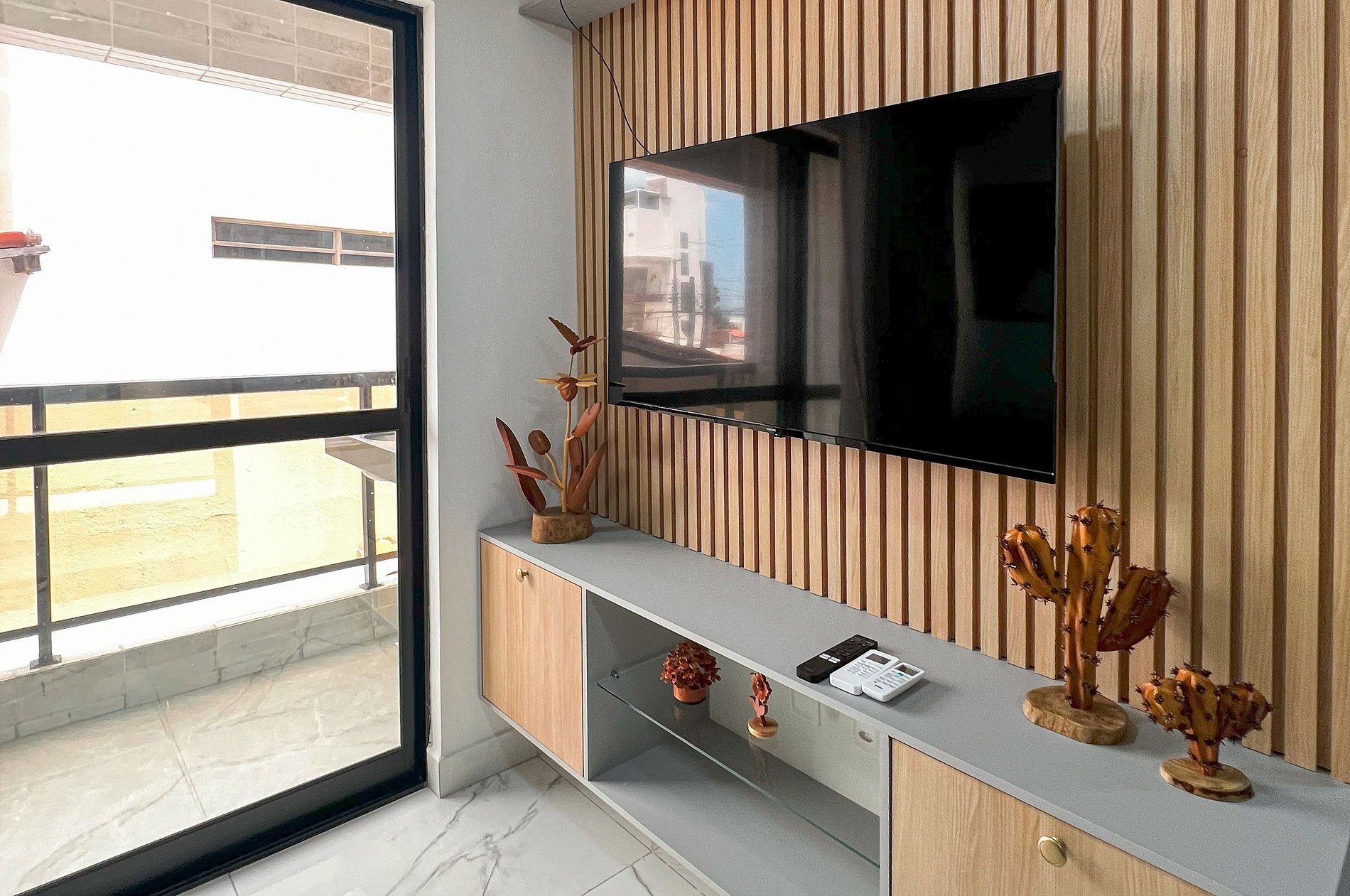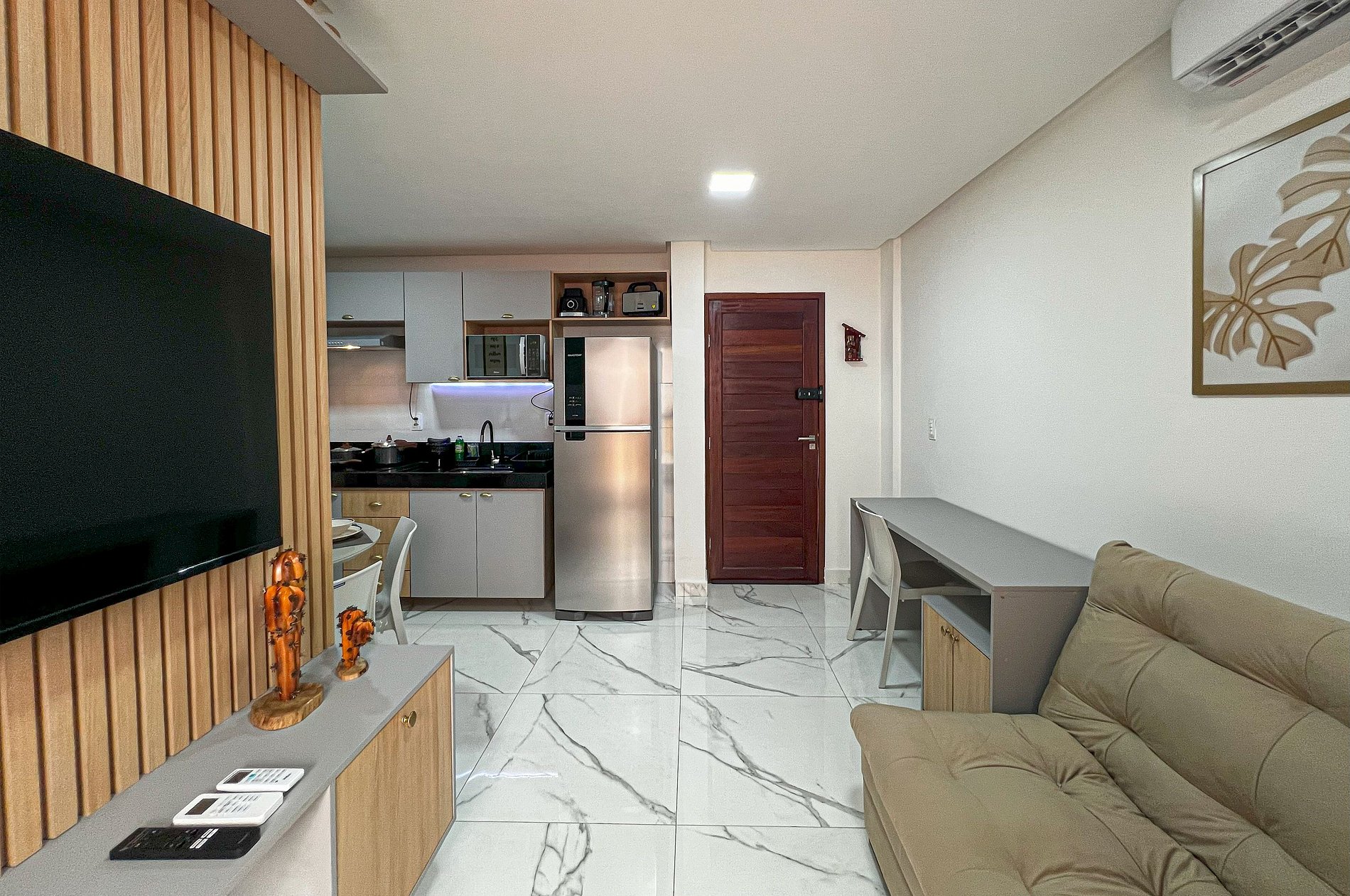 Charmoso apartamento na Praia do Bessa, o VILA ACONCHEGO RESIDENCE é um condomínio Familiar NOVO com apenas 9 unidades (entregue em Set/23), localizado apenas 200m do praia, pertinho de tudo que você precisa para maior comodidade (restaurantes, farmácias, padaria, posto combustível...), decoração moderna, cozinha super bem equipada, 1 suíte master com ar condicionado e TV, um local perfeito para descansar após um dia de praia. Na sala temos um confortável sofá cama, ar condicionado e TV Smart. As cortinas são blackout em todas as janelas, tem Wi-Fi e oferecemos roupas de cama e banho. 1 vaga na garagem para veículos pequenos/SUV médio.