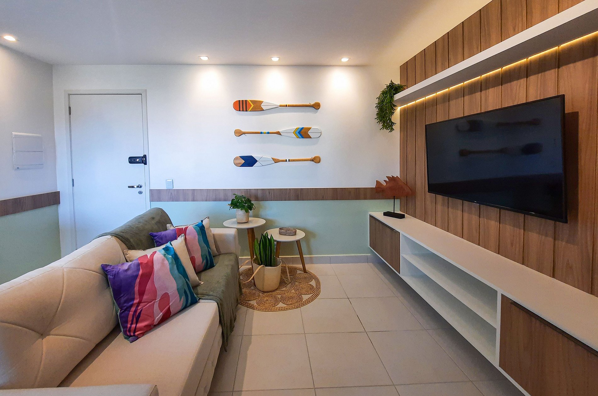 - Sala com sofá e TV Smart