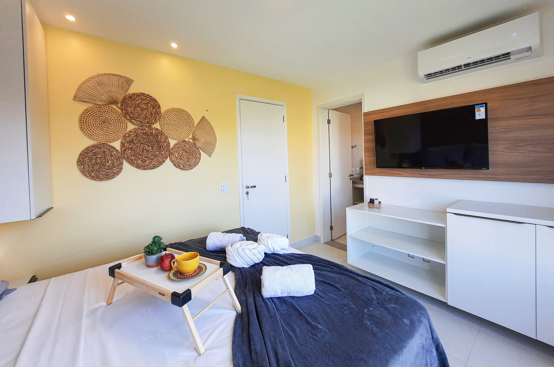 Apt exatamente como na foto, completa com eletro, cama e banho. Adm super atenciosos e o condomínio muito seguro. Voltaremos com certeza