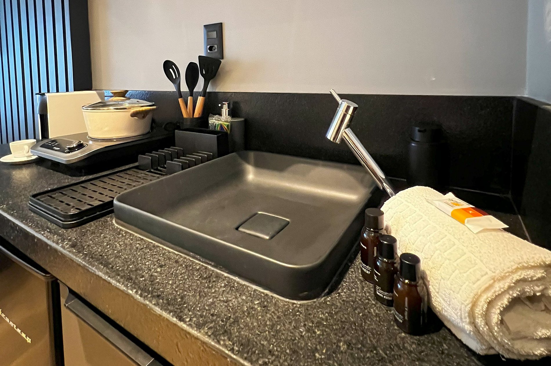 Sofisticado apartamento no SETAI EDITION CABO BRANCO, localizado na beira mar da praia do Cabo Branco, a melhor região para se hospedar em João Pessoa. Na mesma avenida do Food Park Cabo Branco e Bar do Cuscuz. O flat é equipado de forma a trazer maior comodidade e conforto para nossos clientes. O apartamento está localizado no térreo, banheiro (separado chuviero e sanitário), decoração moderna, perfeito para descansar após um dia de praia ou no rooftop do complexo. A suíte possui Ar Condicionado, cortina blackout e armários. A cozinha é equipada com um frigobar, microondas, cooktop, sanduicheira, liquidificador e utensílios básicos como talheres, copos e taças.