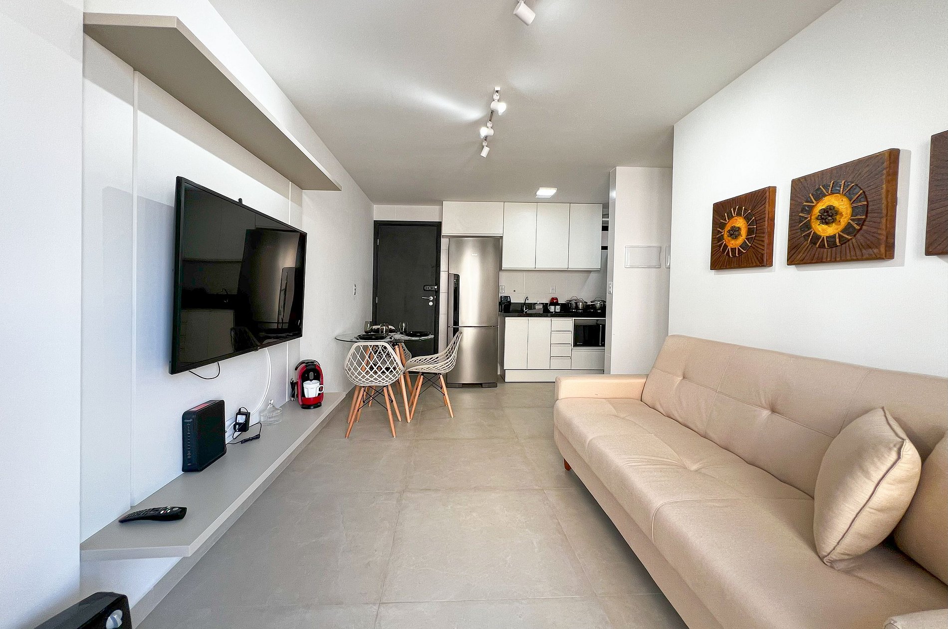 Amplo e confortável apartamento em Intermares, novinho (Montado em Dez/24), com sala, cozinha, varanda, banheiro e quarto, distribuídos em 40m². Acomoda até 4 pessoas (1 cama casal e 1 sofá cama casal), cozinha muito bem equipada, máquina de lavar roupas, ar condicionado no quarto, TV Smart na sala, fornecemos roupa de cama e banho nível hoteleiro.