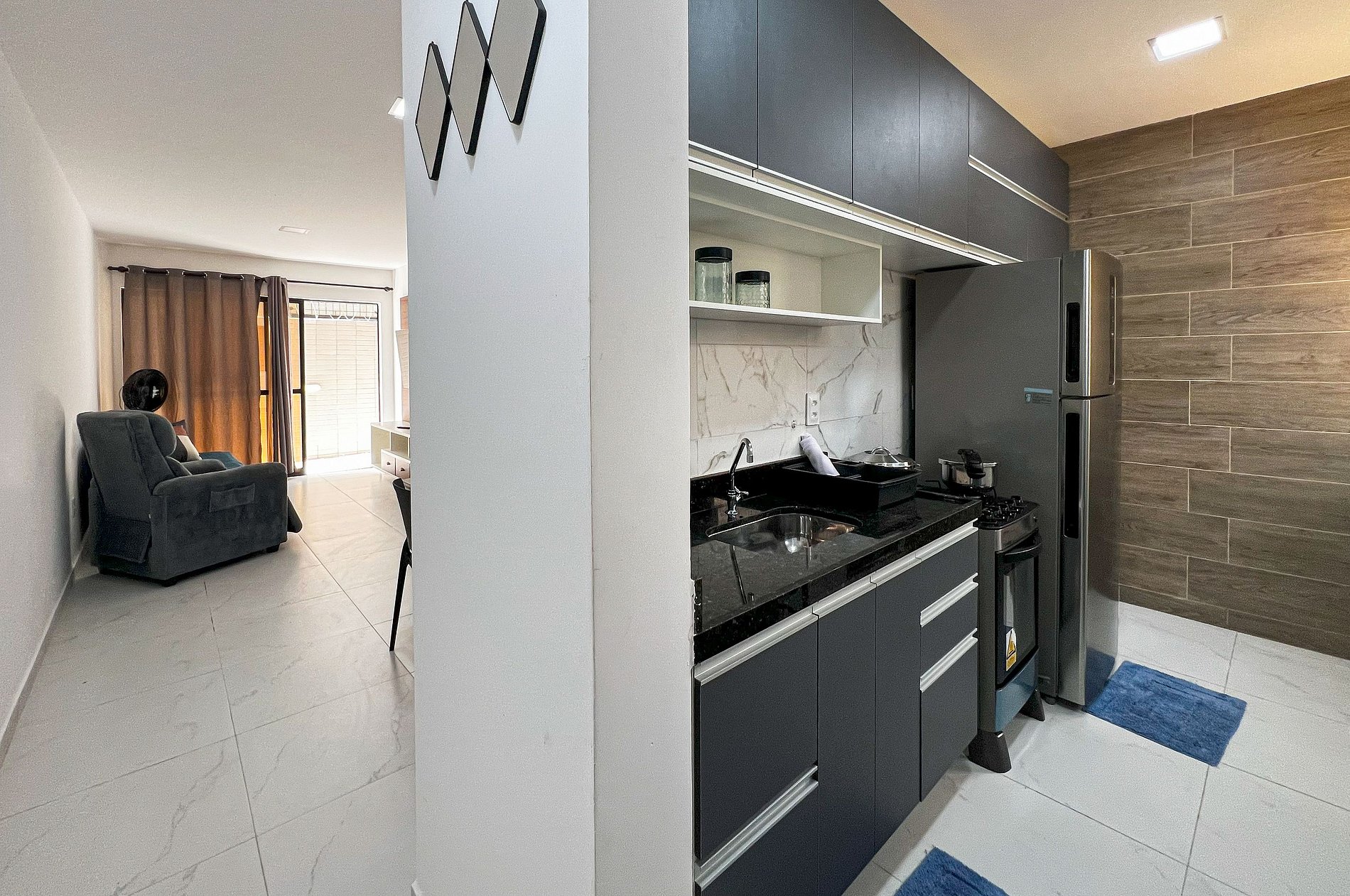 - Sala com Sofá Cama e TV Smart Tela Grande
