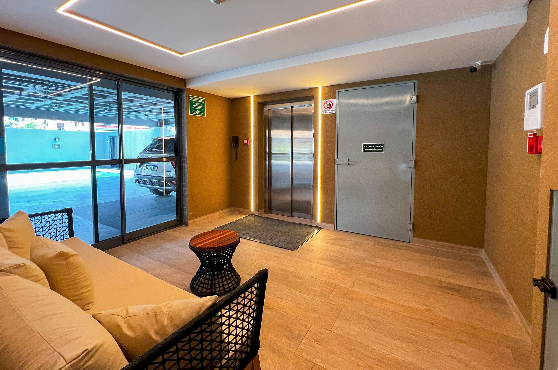 - O acesso é realizado por portaria eletrônica (chave virtual) com monitoramento 24h por câmeras.