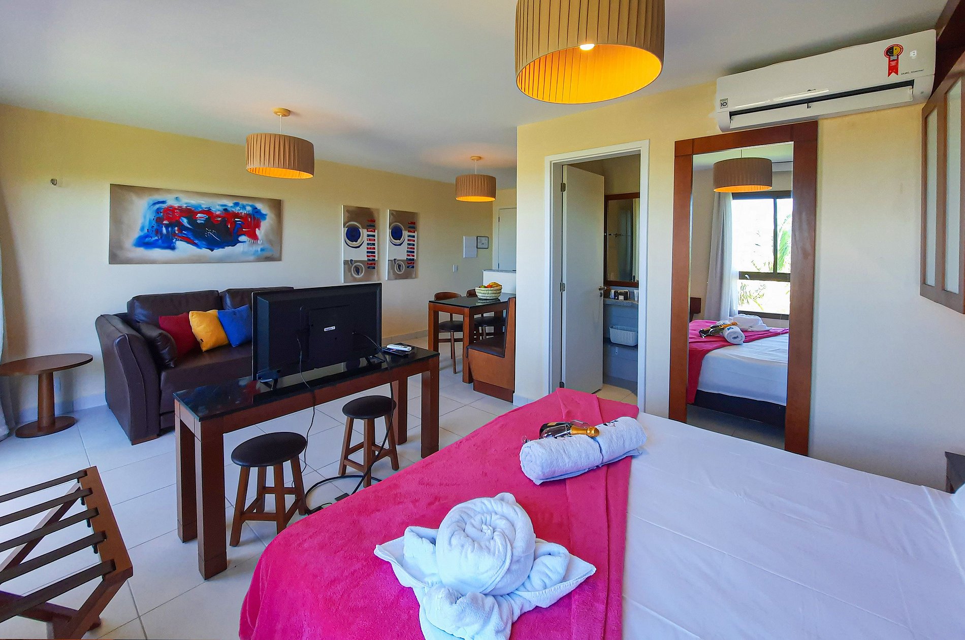 - Sala com sofá cama e TV