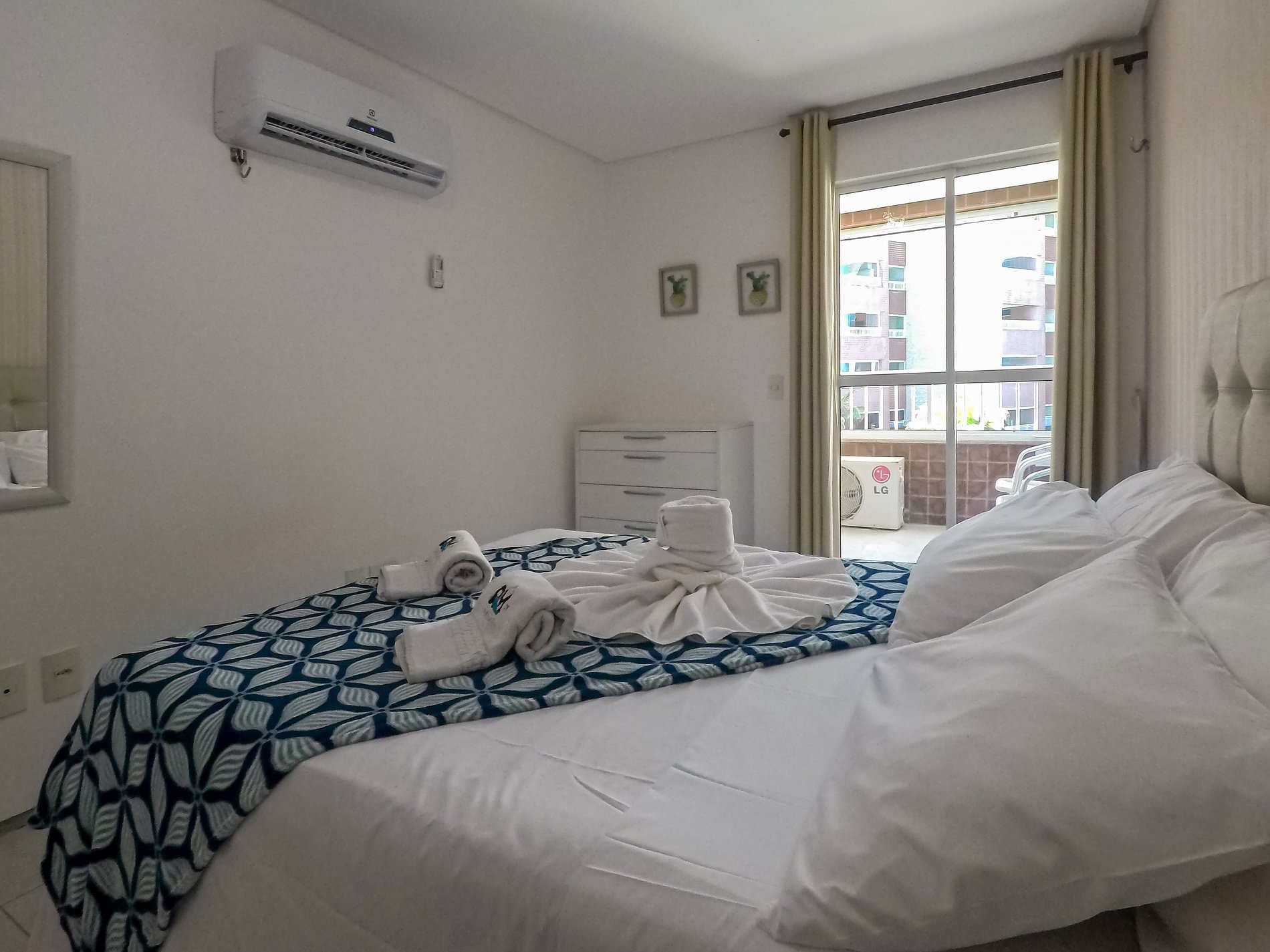 VIZINHO AO BEACH PARK! Apartamento de 105 m², PÉ NA AREIA, localizado no 2° andar. Ampla varanda com mobília, vista piscina. 3 suítes com ar condicionado. Sala em dois ambientes (sala de estar e jantar) e lavabo. Acesso via fechadura eletrônica. A cozinha é completa com geladeira duplex frost free, fogão 4 bocas, forno, sanduicheira, cafeteira, microondas, liquidificador e demais utensílios de cozinha. Disponível WiFi, 01 vaga na garagem e enxoval completo (cama, mesa e banho). Acomoda perfeitamente até 7 pessoas (incluindo crianças).